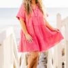 We are so in love with this dress! It is perfect for a casual day out! Its bold color and trendy mineral wash make it a stylish addition to your wardrobe! Embrace a chic and modern look with this must-have dress!