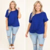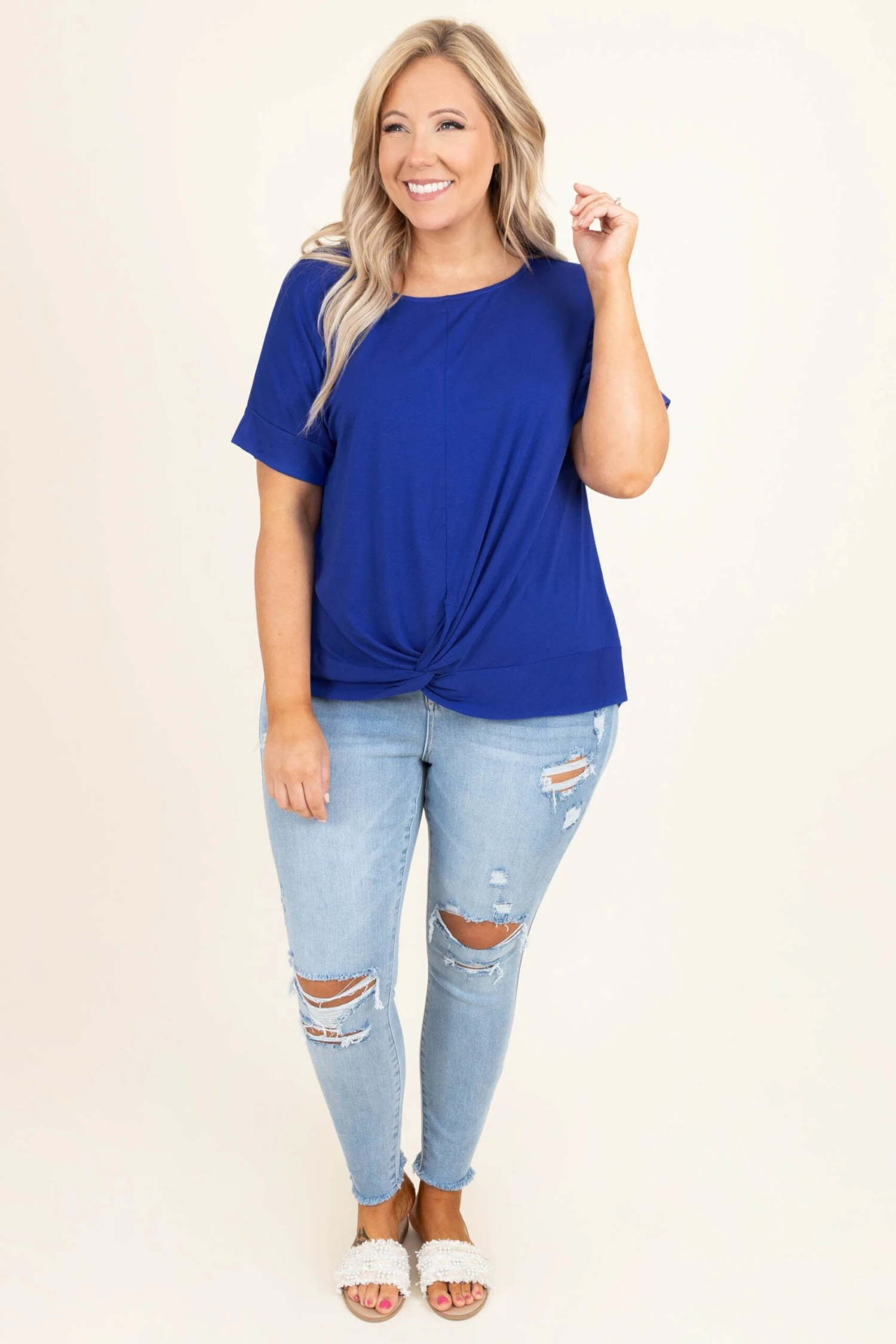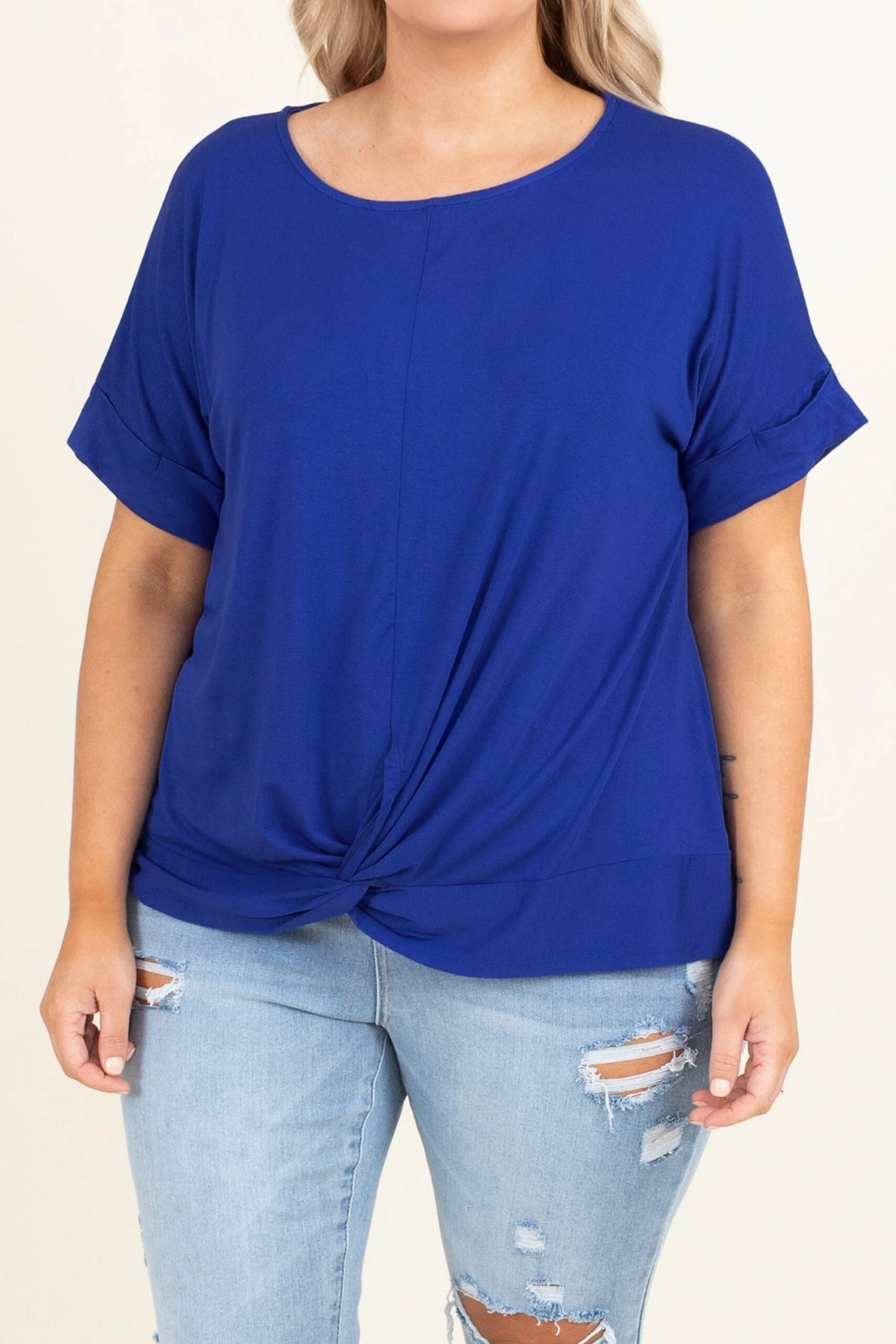 Everyone will be talking about how good you look in this top! The knotted hem is so trendy and the bright blue color will have all eyes on you! This cutie is so soft and comfy making it perfect for all day wear! Style it with jean shorts and sandals for a chic every day look!