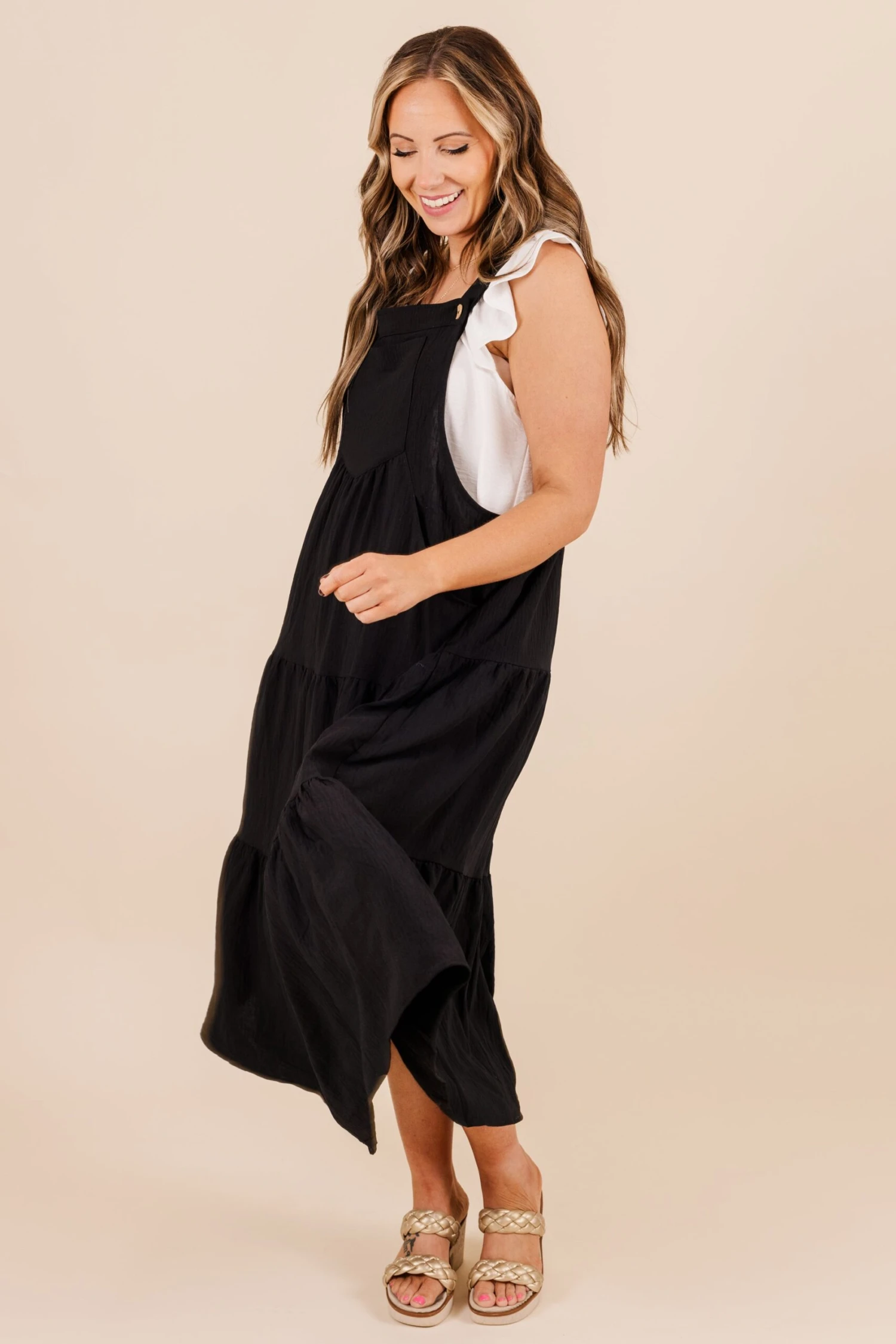 Get up and dance in this gorgeous dress! Its flowy fit and functional pockets make it both comfortable and practical, while the unique textured design adds a touch of elegance! With its neutral black color, this dress is versatile and perfect for any casual occasion!Â