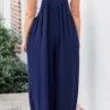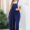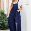 This jumpsuit is out of this world cute! The pleated waist accent and button ties are simply adorable! It has functional pockets and is super comfy for all day wear! Pair this cutie with booties, heels or sandals for the ultimate chic look!