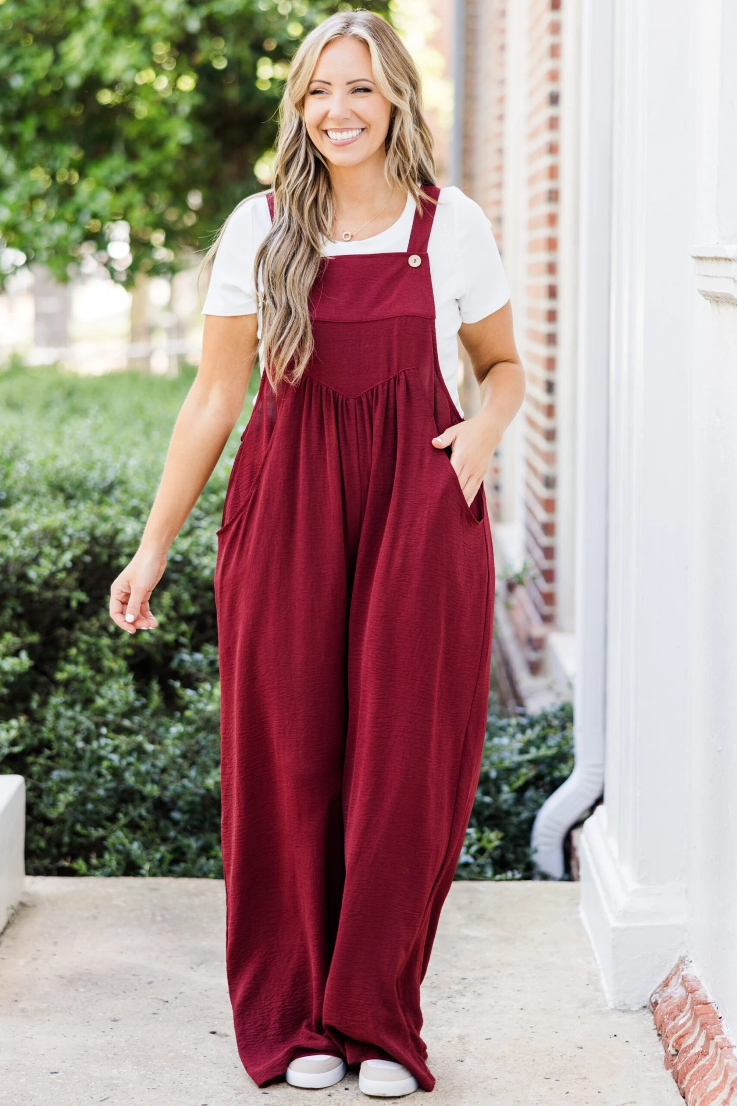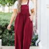 This jumpsuit is out of this world cute! The pleated waist accent and button ties are simply adorable! It has functional pockets and is super comfy for all day wear! Pair this cutie with booties, heels or sandals for the ultimate chic look!