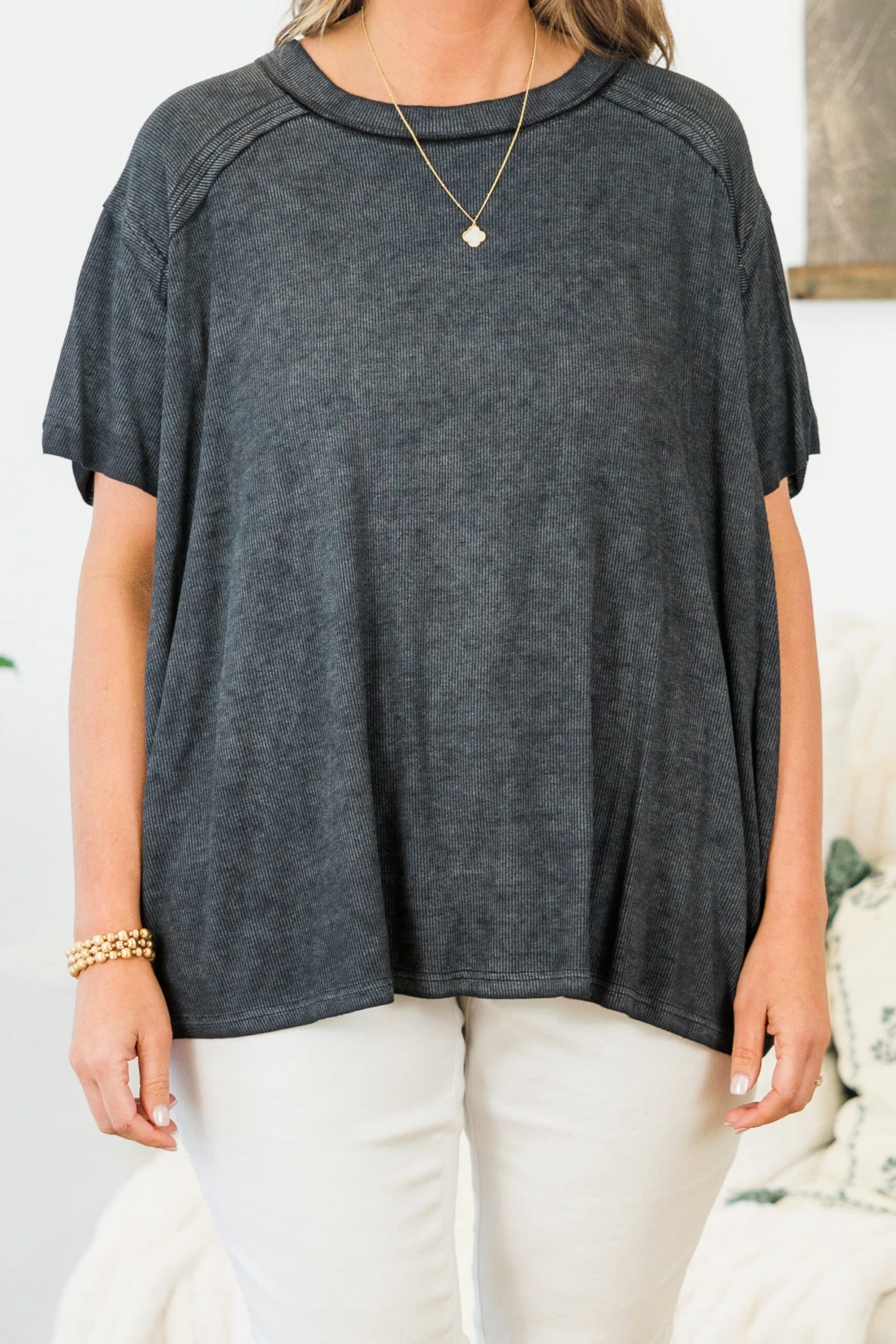 Say goodbye to boring basics with our Gotta Let You Go Top! This washed ribbed short sleeve boat-neck top is perfect for adding a touch of texture to your wardrobe! With a boat-neck design and soft ribbed fabric, this ash black top will keep you comfortable and stylish all day long!