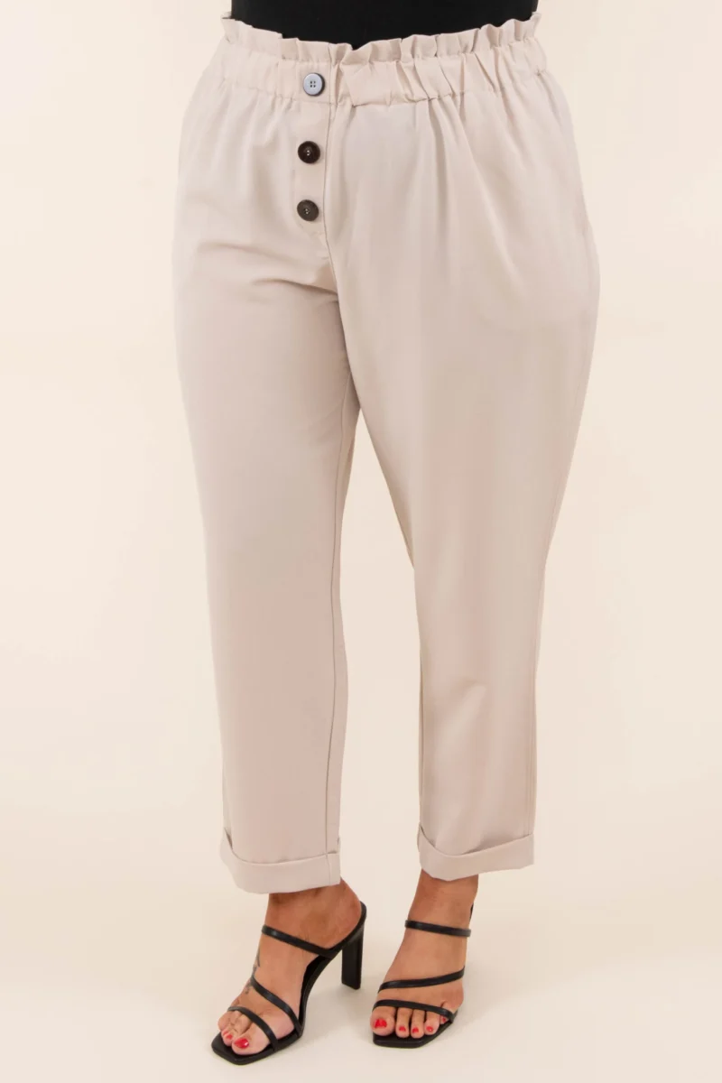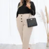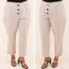Calling all boss babes, these are your new go to work pants! These stylish yet professional pants feature faux buttons and a tapered fit on the leg. Pair these with a cute top, fun shoes, and your favorite accessories for a work look that will make waves!