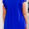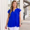 Keep your chic style at bay in this fabulous top! It offers flutter sleeves and easy care, wrinkle-free fabric that makes it perfect for everyday wear! Its royal bluecolor allows for versatile styling and will keep you looking great all day long!