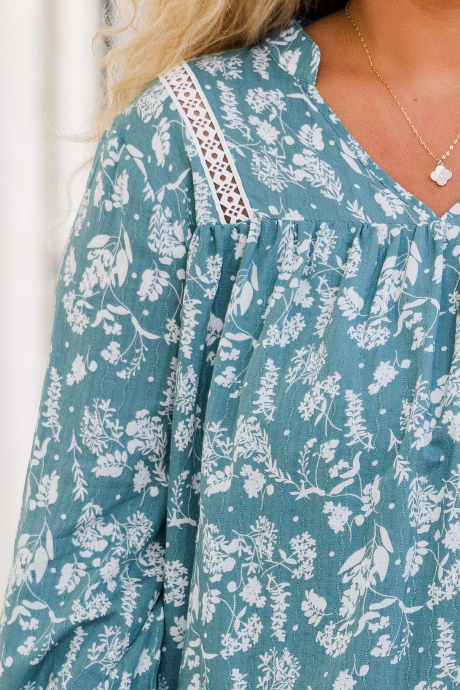 Unleash your adventurous spirit with our Graceful Blossom Top! This sage-colored, flowy top features a vibrant ditsy floral print and intricate crochet details on the shoulders for a touch of bohemian charm! With elastic sleeves for added comfort, this top is the perfect addition to your wardrobe!