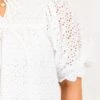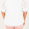 Fall head over heels for this top in white! Made with delicate eyelet fabric, it’s perfect for adding a touch of romance to any outfit! The elastic puff sleeves and front tie add a charming detail! Bring out your playful side with this top!