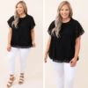 This top is simple and chic! This top has a solid neutral color with a textured fabric we adore! It’s easy to style, has a figure-flattering fit, and features an attached under-lay for the ultimate look! Style this blouse with skinnies and wedges for your next event!Â