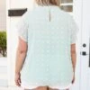 This top is simple and chic! This top has a solid mint color with a textured fabric we adore! It’s easy to style, has a figure-flattering fit, and features an attached under-lay for the ultimate look! Style this blouse with skinnies and wedges for your next event!Â