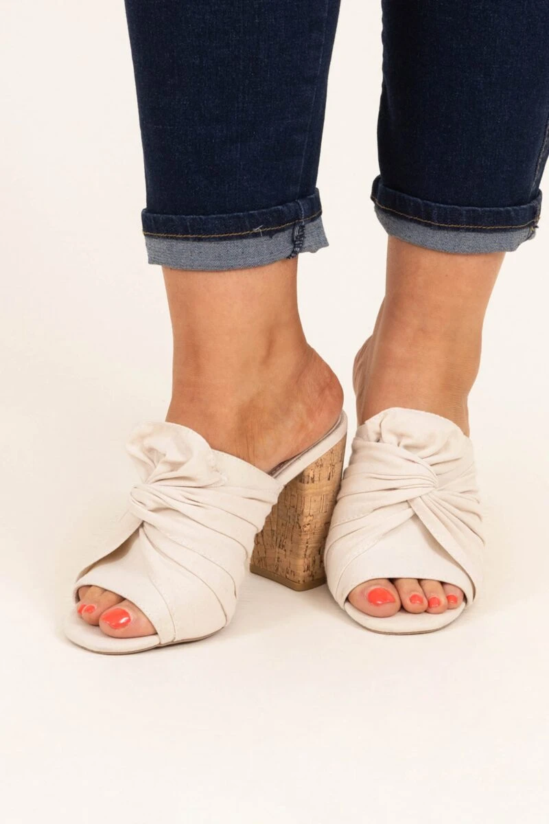Make your grand entrance in these mule heels! The neutral colors can be paired with all of your fav outfits and the knotted look is so unique! The mule style is so trendy right now and the cork block heel makes these so easy to walk in! Style them with anything to instantly elevate your look!