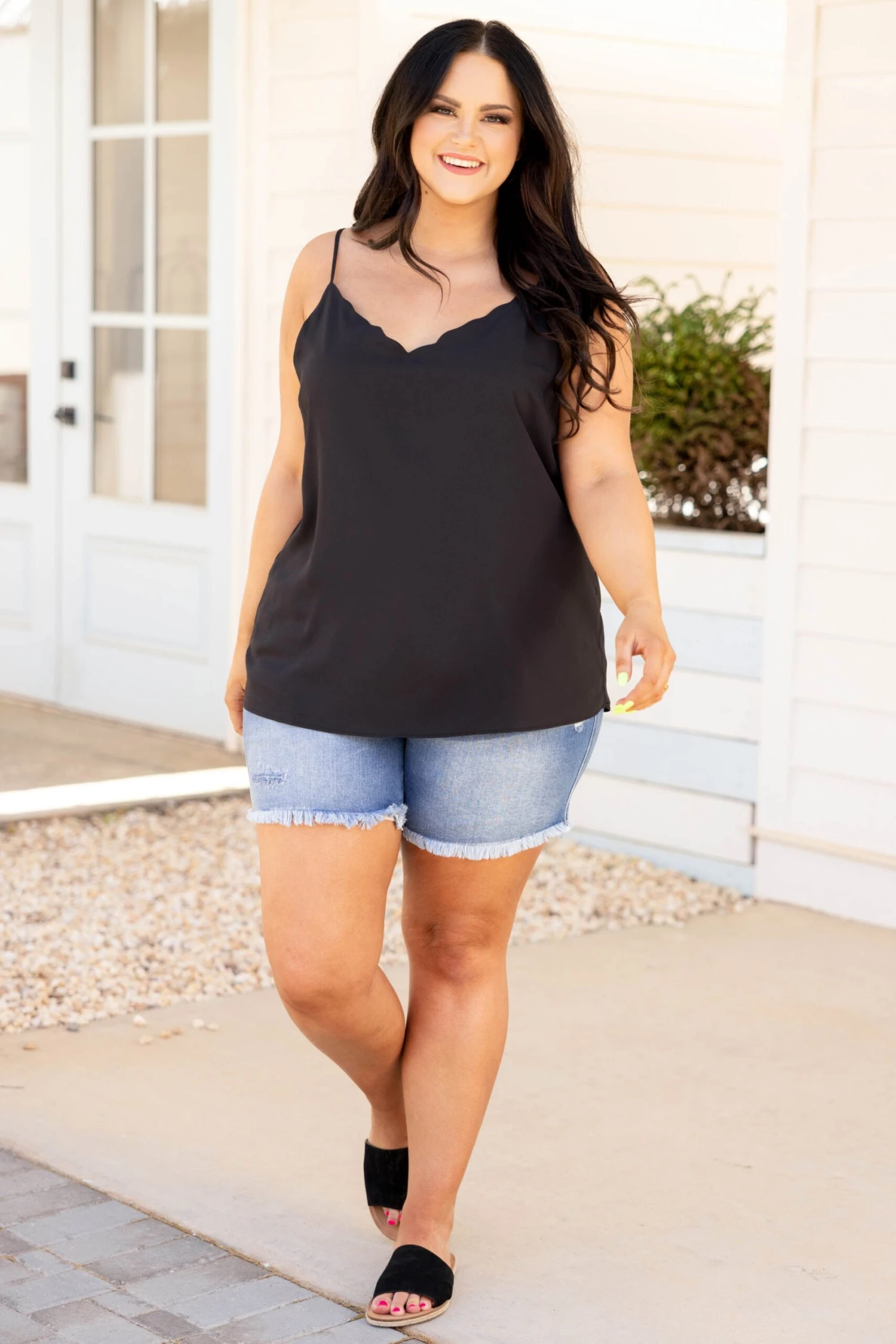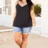 Getting this top would be a great idea! The black color makes this tank an instant classic! The simple style can be paired with so much and the spaghetti straps give this babe a flirty feel! Style it with some jean shorts and sandals for a super chic look!