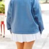 Join the club and add this cutie to your wardrobe for the season! It is perfect for anyone looking for a way to stay warm and stylish! Crafted with a super soft fabric blend, it offers a comfortable fit that is perfect for both indoor or outdoor activities! This indigo sweatshirt features a graphic that adds an eye-catching element of style!