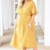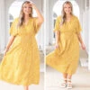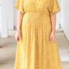 Put your hands on this beauty and don’t let go! This dress has a dazzling yellow color with a trendy floral print that is perfect for the season! The smocked design on the front is so sweet! Throw this dress on with some cute sandals or wedges for a look they’ll never forget!