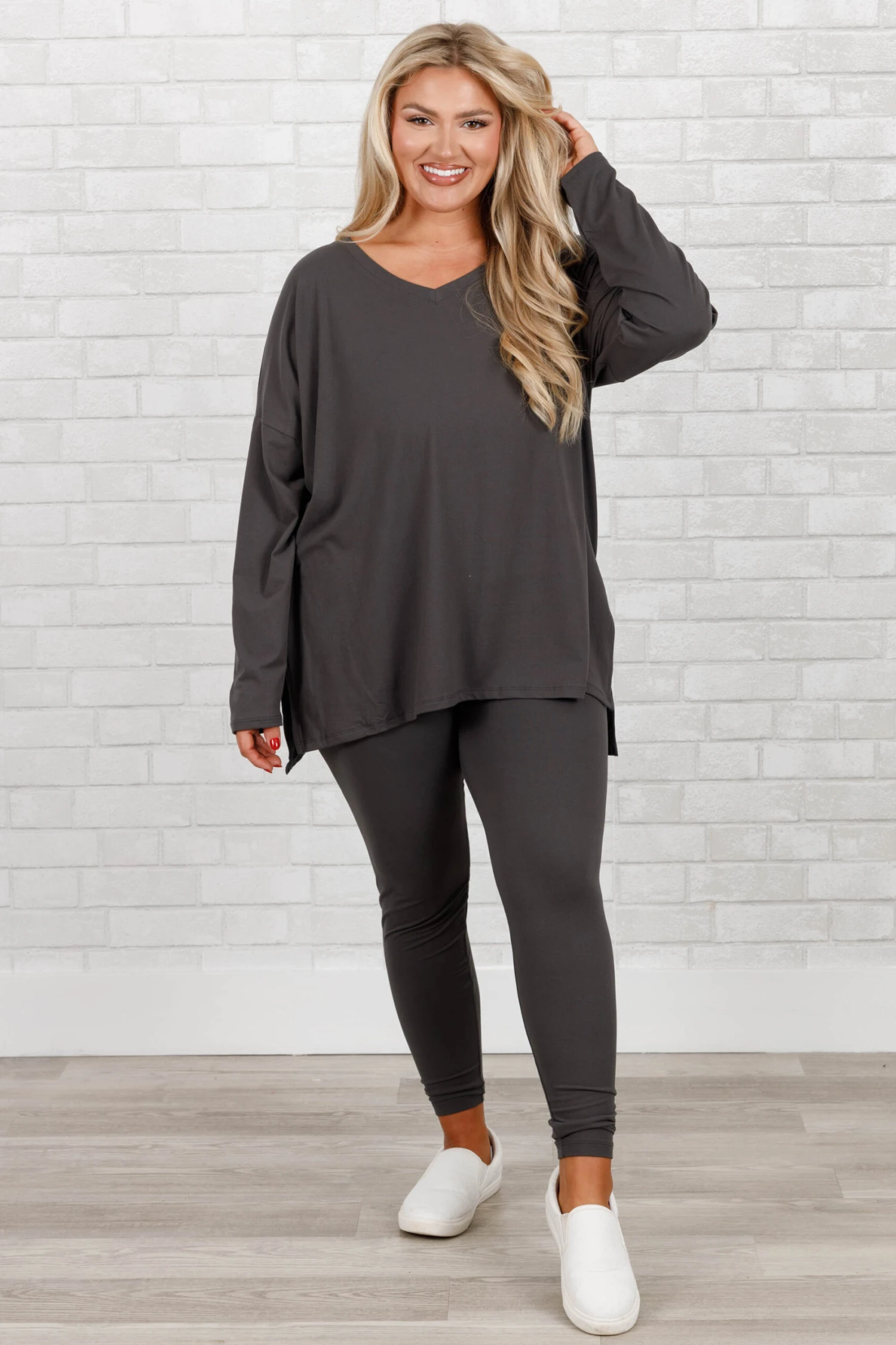 We made this set with you in mind! Its stretchy fabric and classic ash grey color make it comfortable and versatile for lounging around or a casual day out! With its comfy fit, you will feel relaxed and confident no matter where you go!