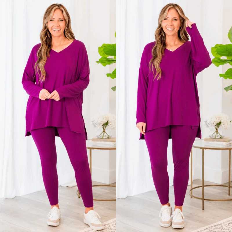 We made this set with you in mind! Its stretchy fabric and classic light plum color make it comfortable and versatile for lounging around or a casual day out! With its comfy fit, you will feel relaxed and confident no matter where you go!