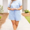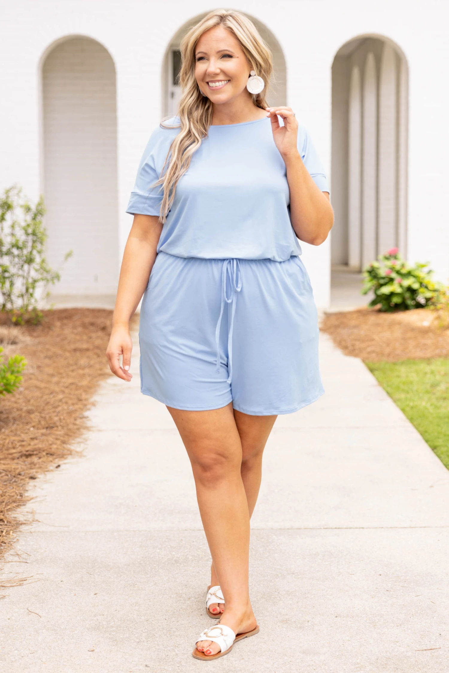 Happiness will bloom when you wear this romper! The spring blue color can be worn for a statement and the cinched waist is sure to flatter! The material is butter soft and so stretchy plus, it has pockets! Style this with some sandals for a perfect look!