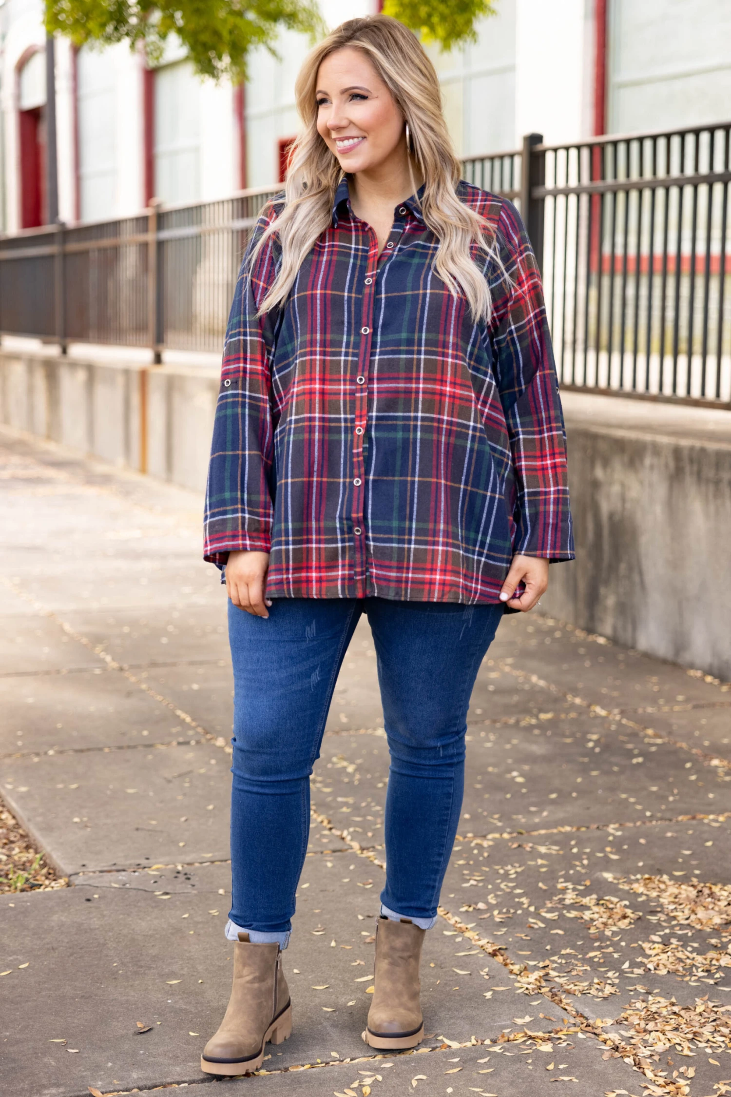 This top is so trendy and will make you so happy this Fall season! The trendy flannel plaid print is the perfect added touch! This top is so warm, figure-flattering for all body types, and serves as a great layering piece for all of your basics or rock it buttoned down! Simply pair this top with skinnies and boots for an effortless, seasonal look!