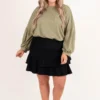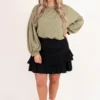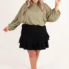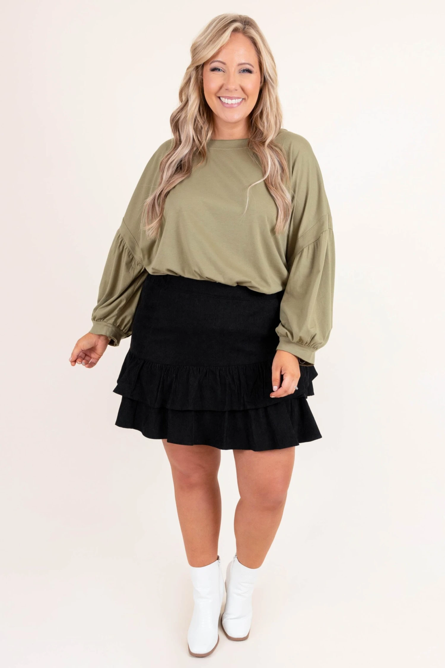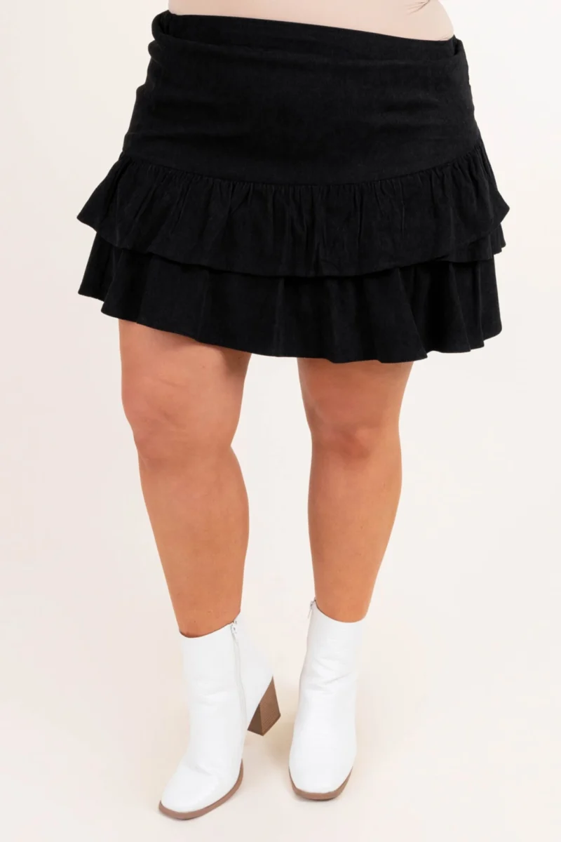 You will be so happy with this skirt! This skirt has a bold black color and ruffle design that is perfect for the season! It has a beautiful fabric you can wear all day long with a fit to flatter your figure in the best way! Style this skirt with a cute top and booties for an easy everyday look!