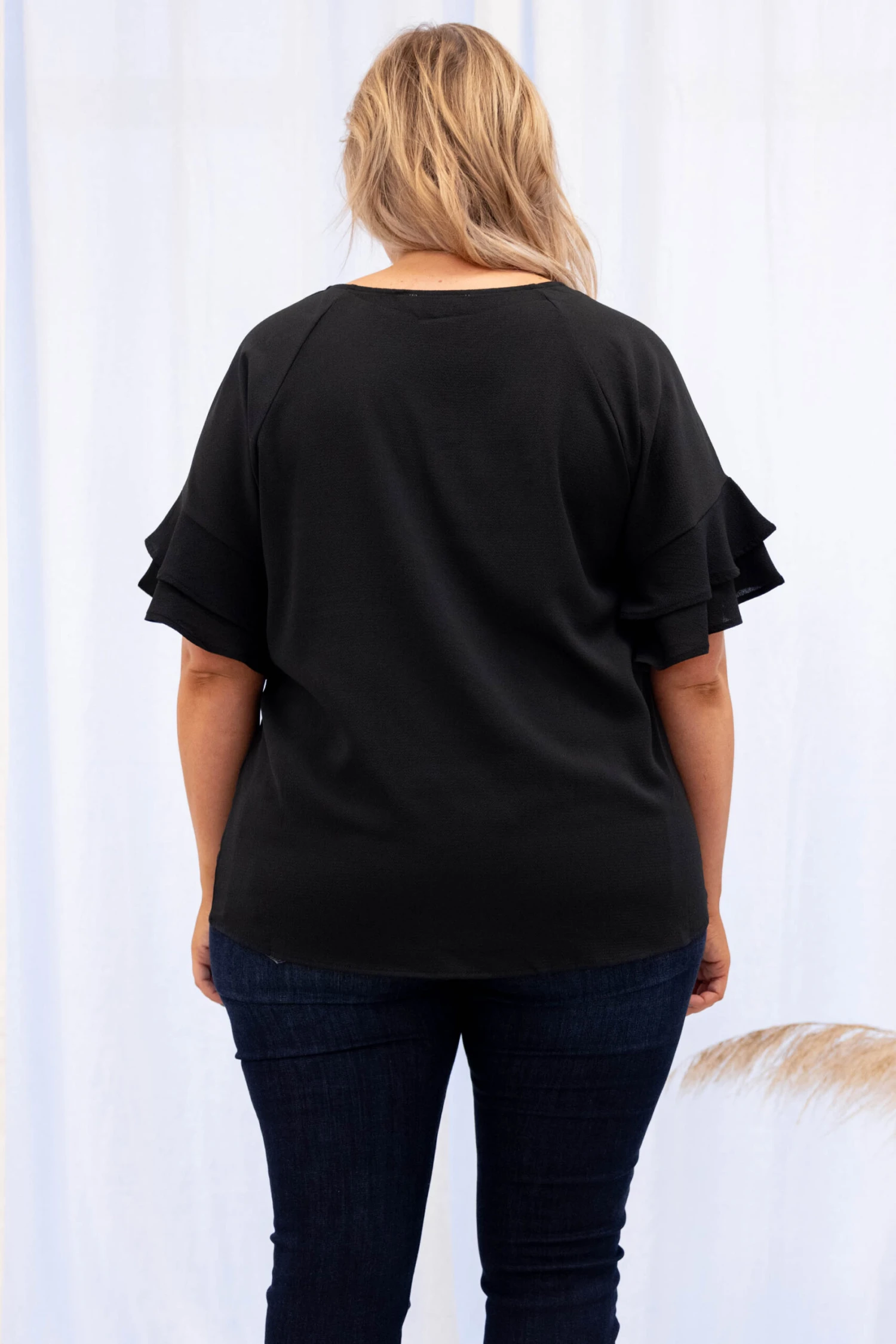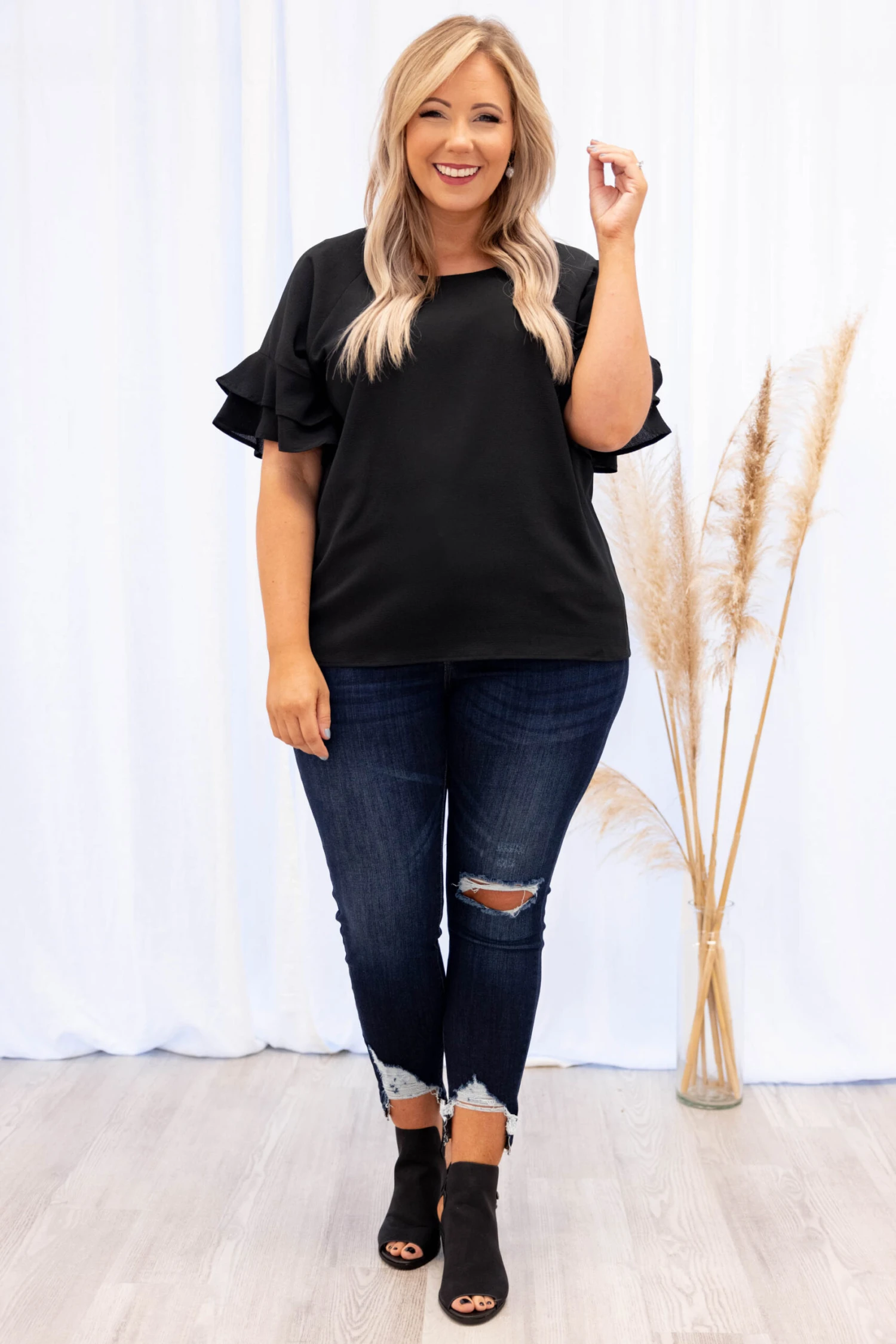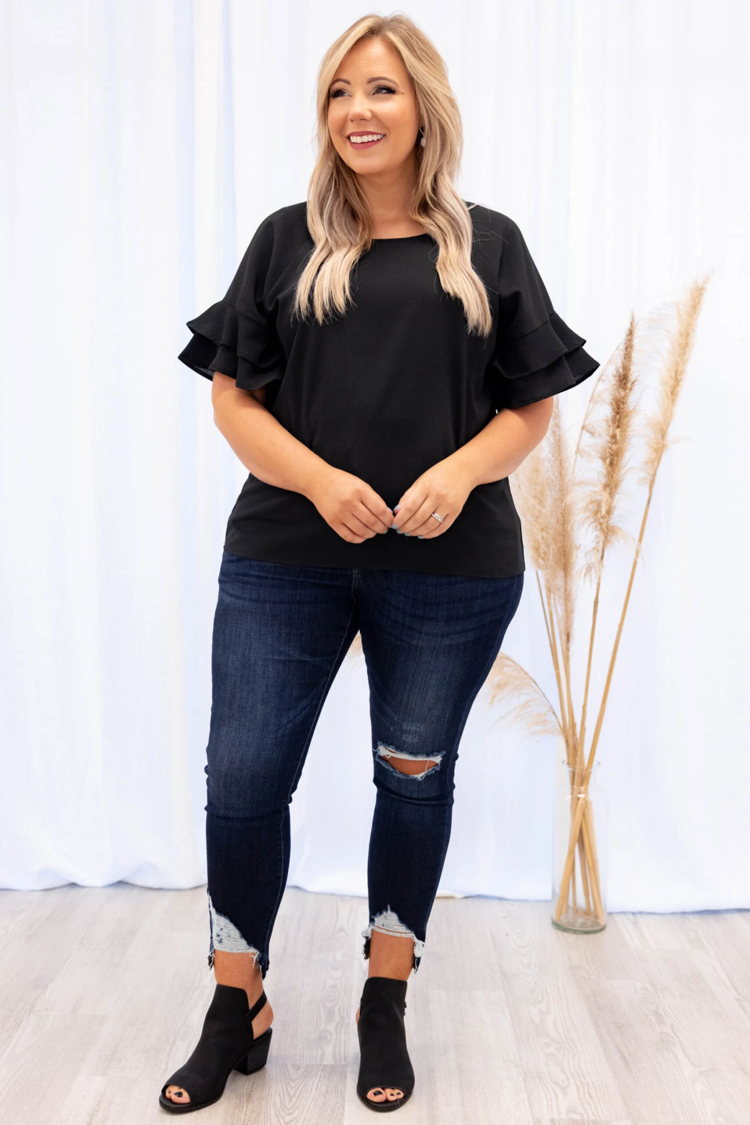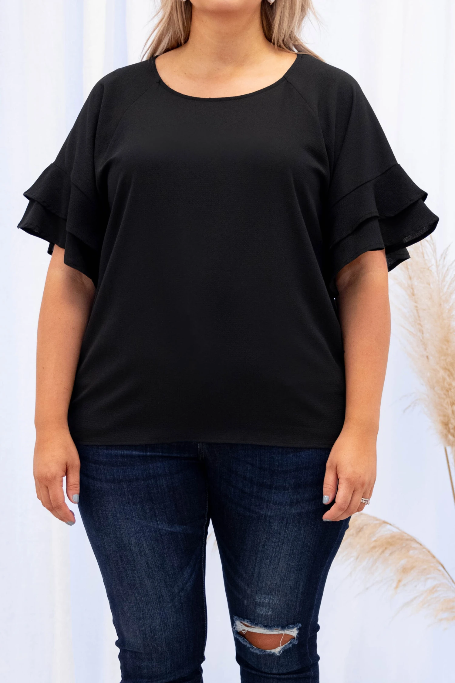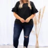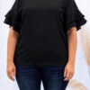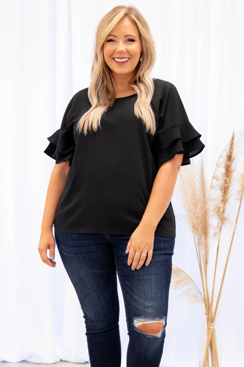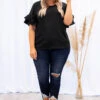 Everyone will be looking for excuses to talk to you in this top! It has a solid black color with a fun and flirty fit to flatter your figure! It’s comfortable for all-day wear, is easy to style with your favorite shoes and accessories, and is just what your wardrobe needs for the season! Pair this top with skinnies or leggings for an effortlessly chic look!