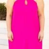 We cannot wait to see you in this dress! This chic hot pink-colored dress is incredible and anything but boring with its halter top neckline we love! It has a unique flowy fit that will flatter every figure and can be worn with anything in your closet! Toss it on with slides to keep it casual, or dress it up with jewelry and wedges. Just make sure to credit us for your incredible style in the tabloids!