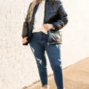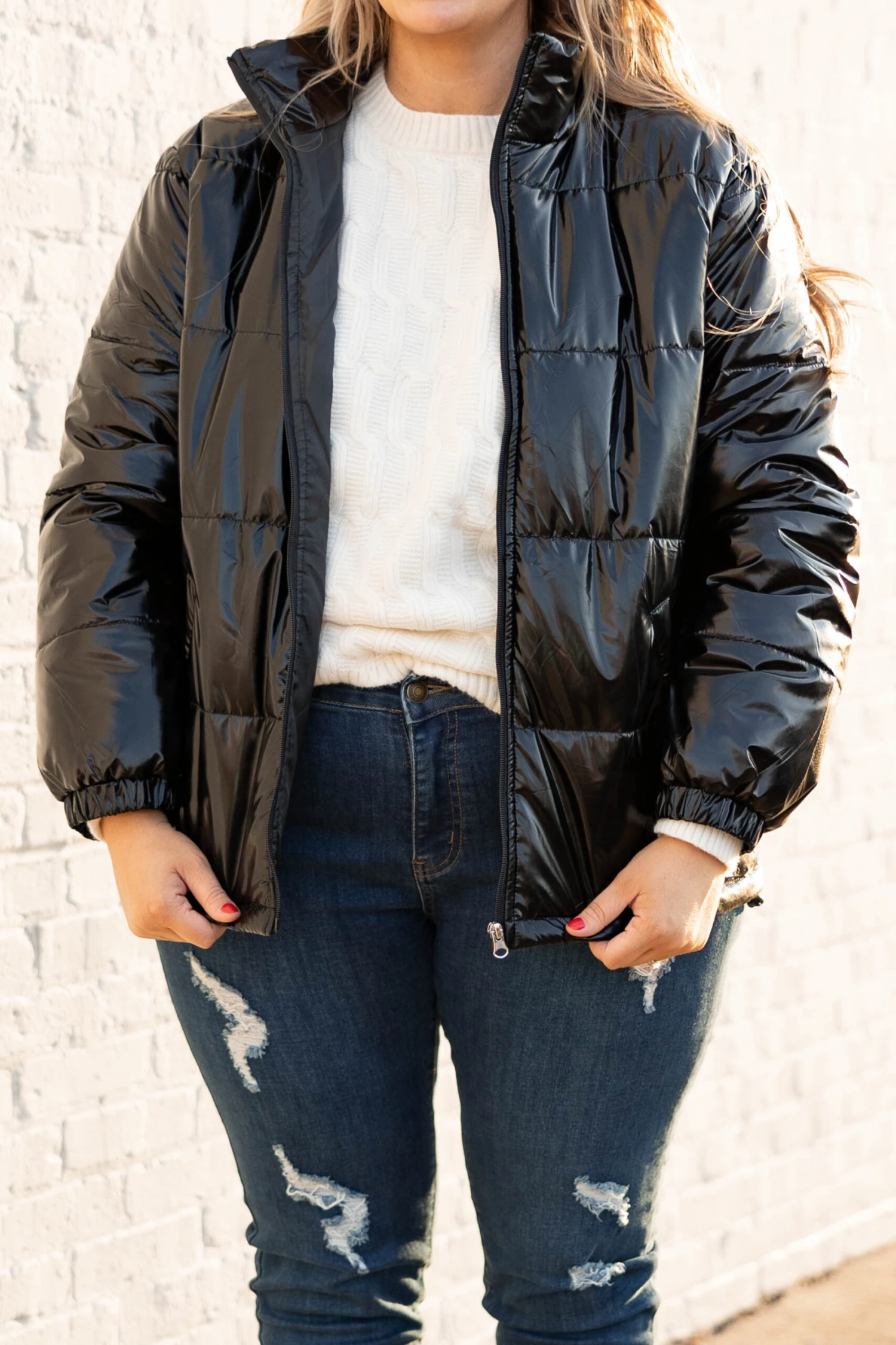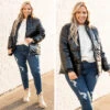 This jacket is so much fun! It has a classic black color with a metallic design that is super trendy and sweet! The cozy, flattering fit is perfect for those cold days ahead this season! Layer this fun jacket over all of your faves for an unforgettable look!