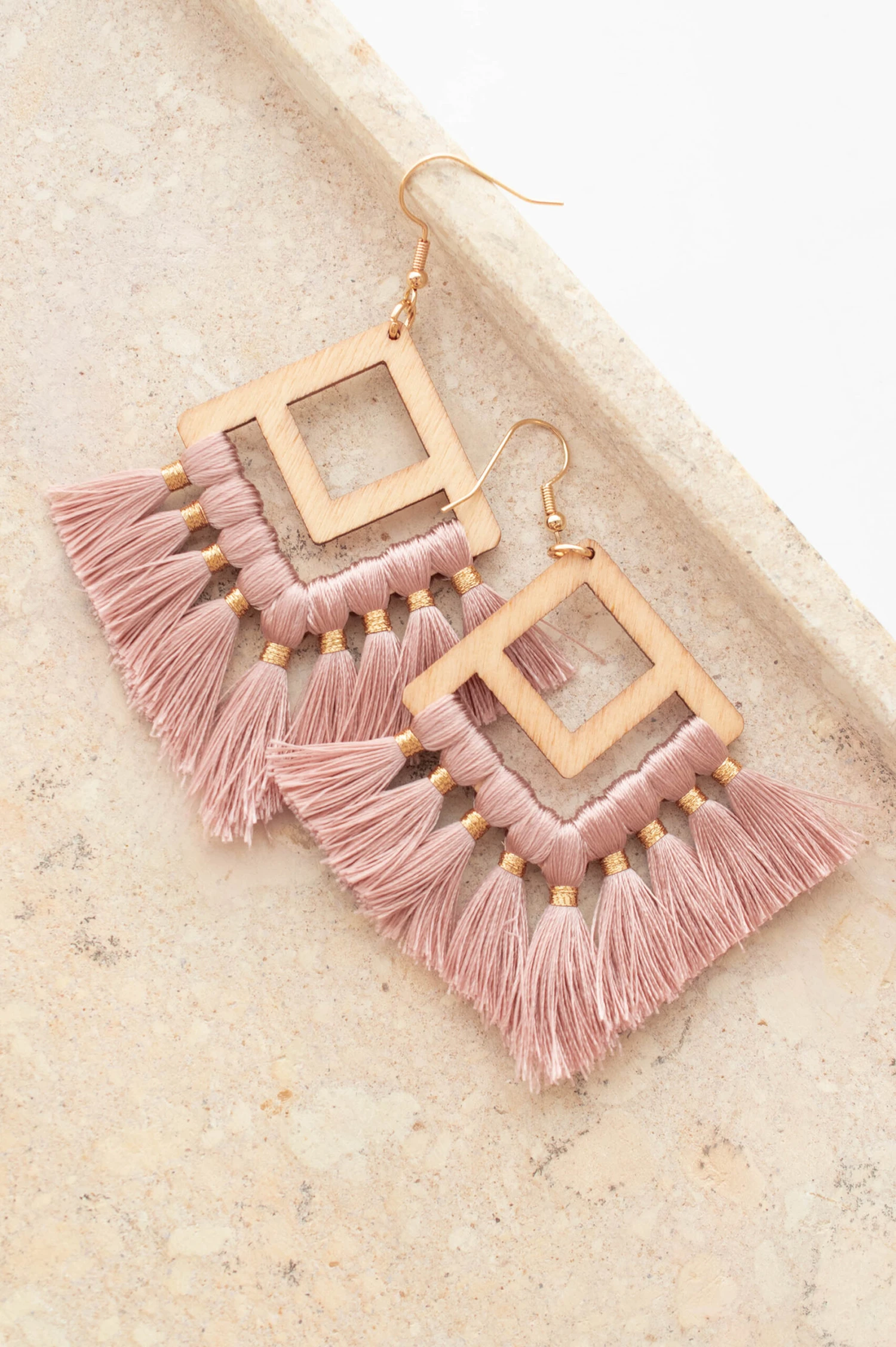 These earrings were made for you! They have fun pink tassels and a cool geometric shape. Style these with your fave outfit for the season for a chic outfit!