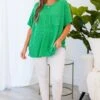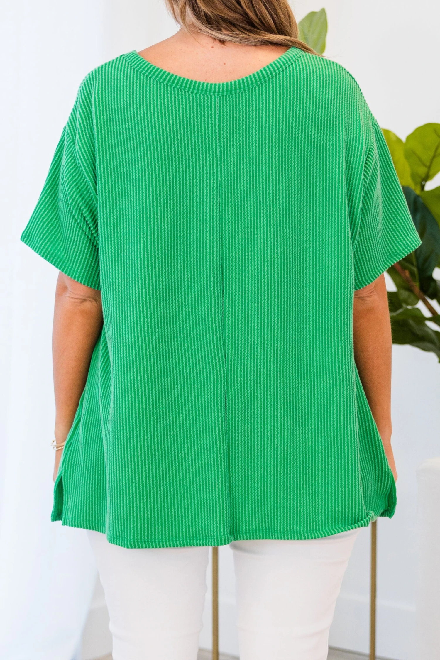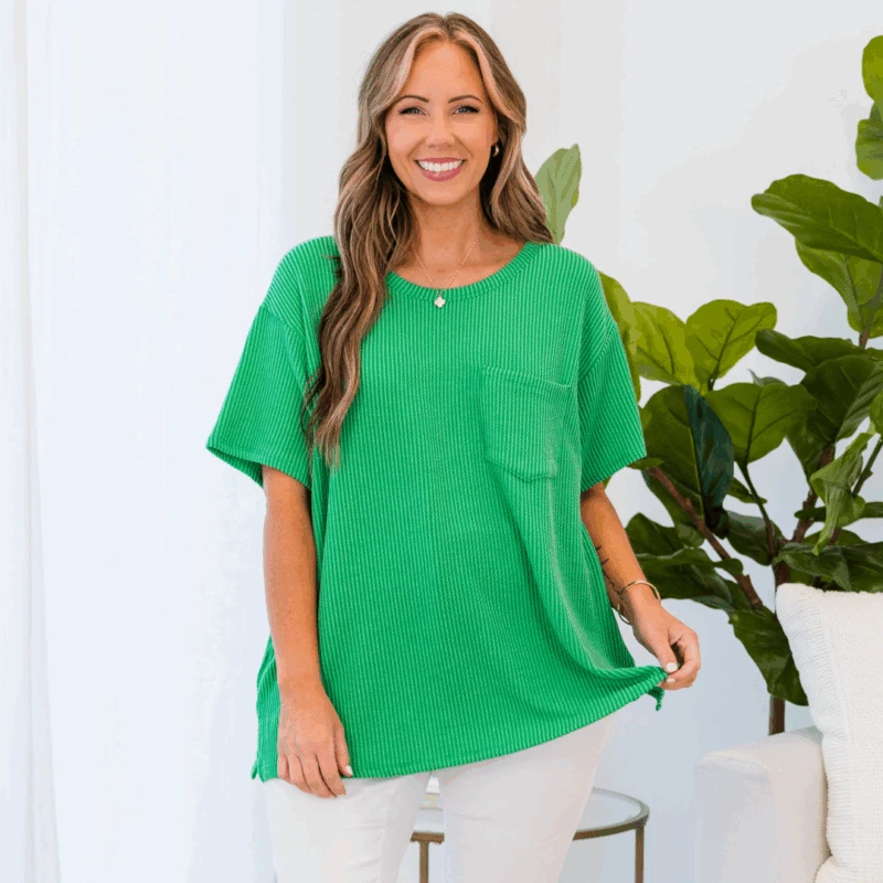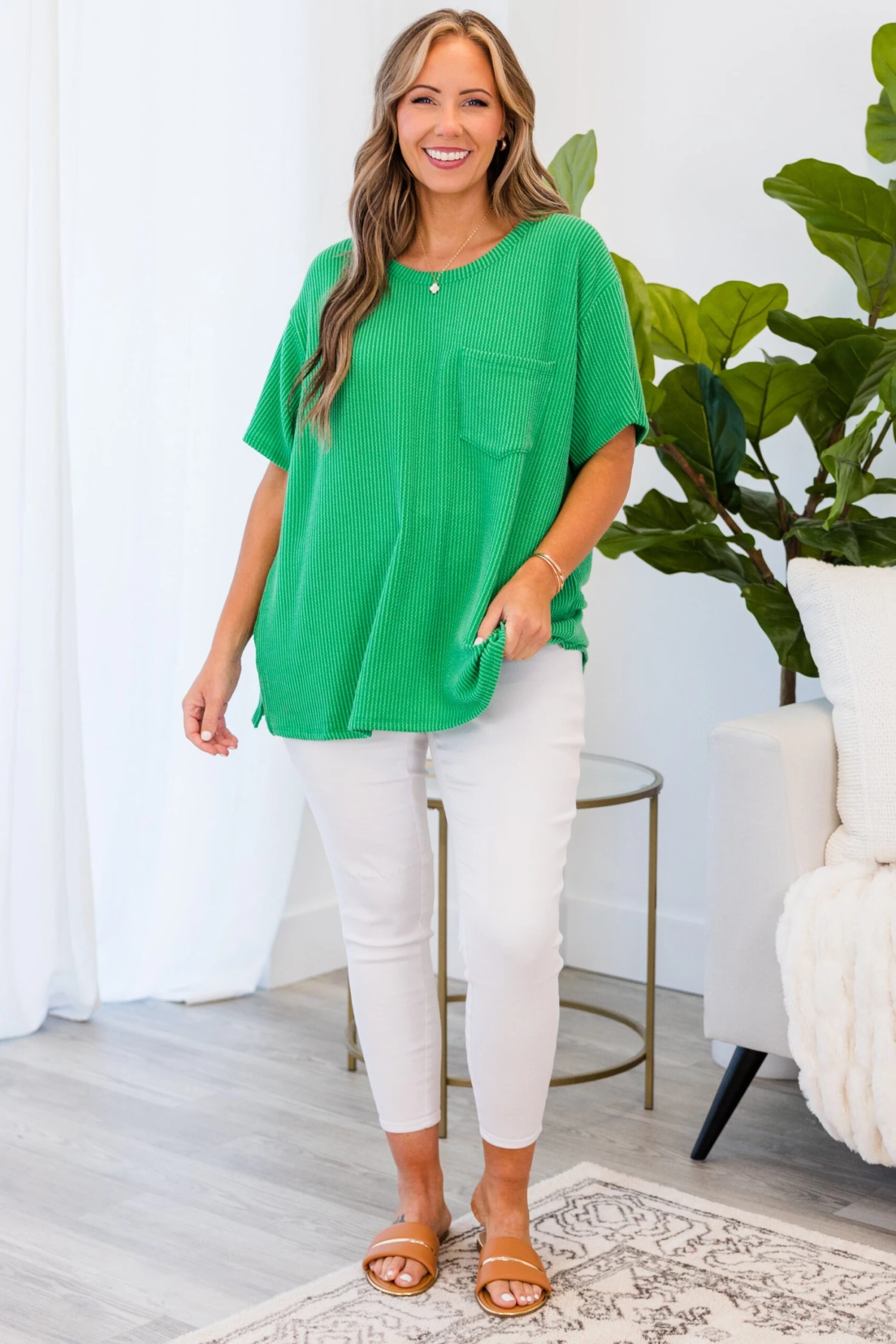Expertly crafted, the Headliner Top boasts a comfy fit and a textured stripe pattern that is so sweet! The lovely kelly green color elevates any outfit, perfectly pairing with cute denim and sandals! Experience style and comfort with this versatile top!