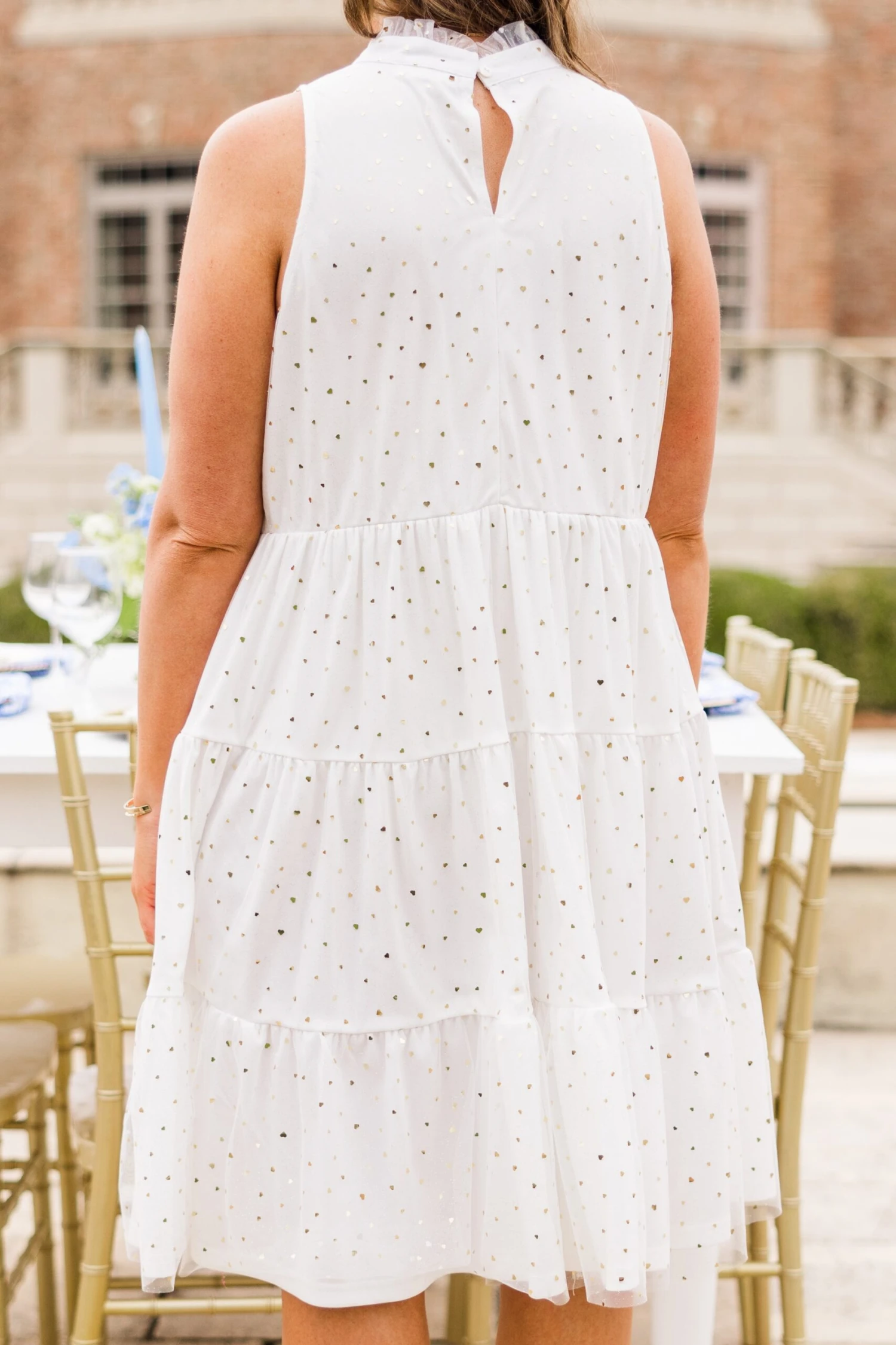 This dress has stolen our hearts! It features a halter design and shimmery glitter heart accents, creating a glamorous and romantic look! The tulle material adds a delicate touch, making it perfect for special occasions! Sparkle with confidence in this unforgettable dress!