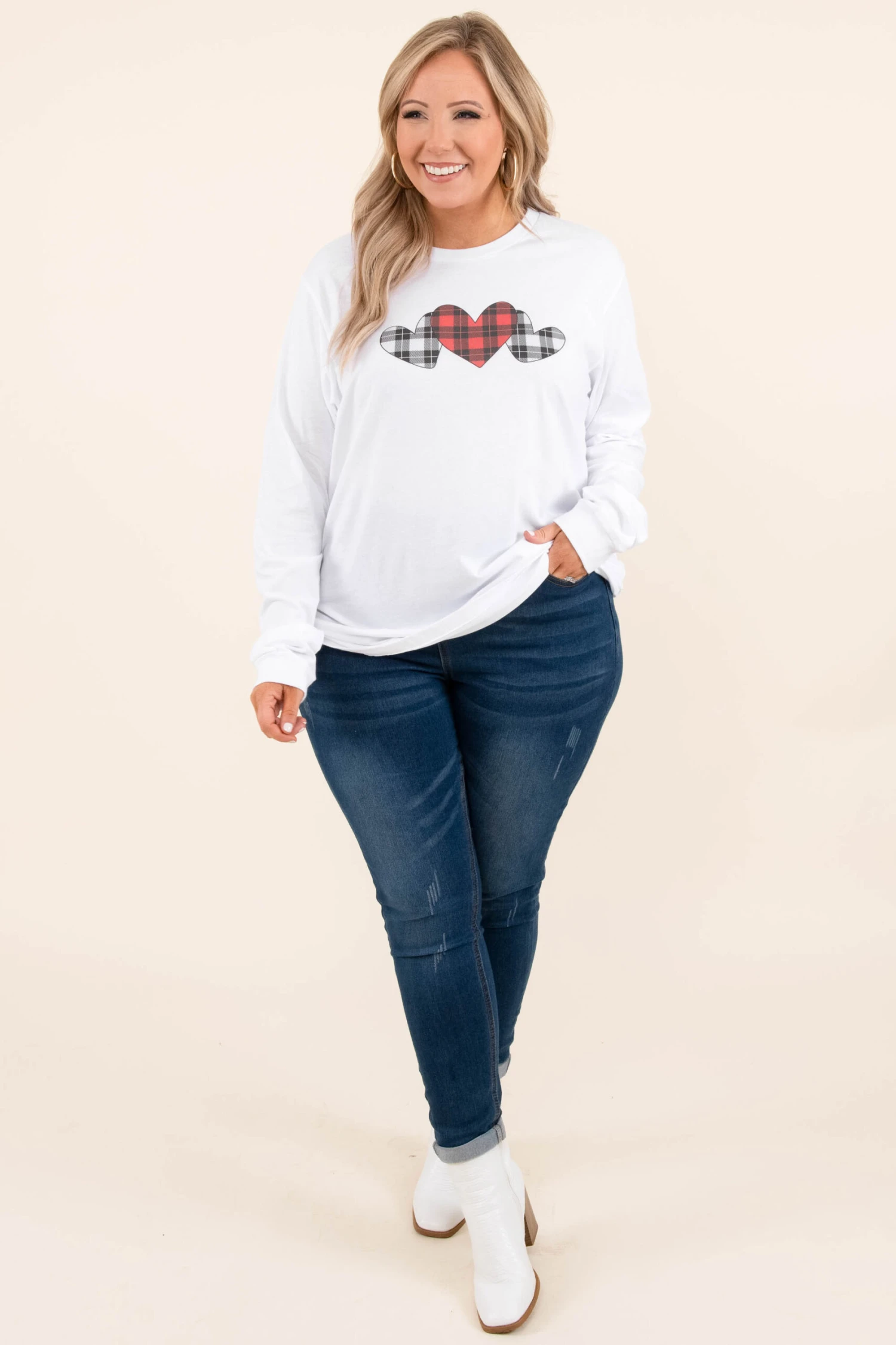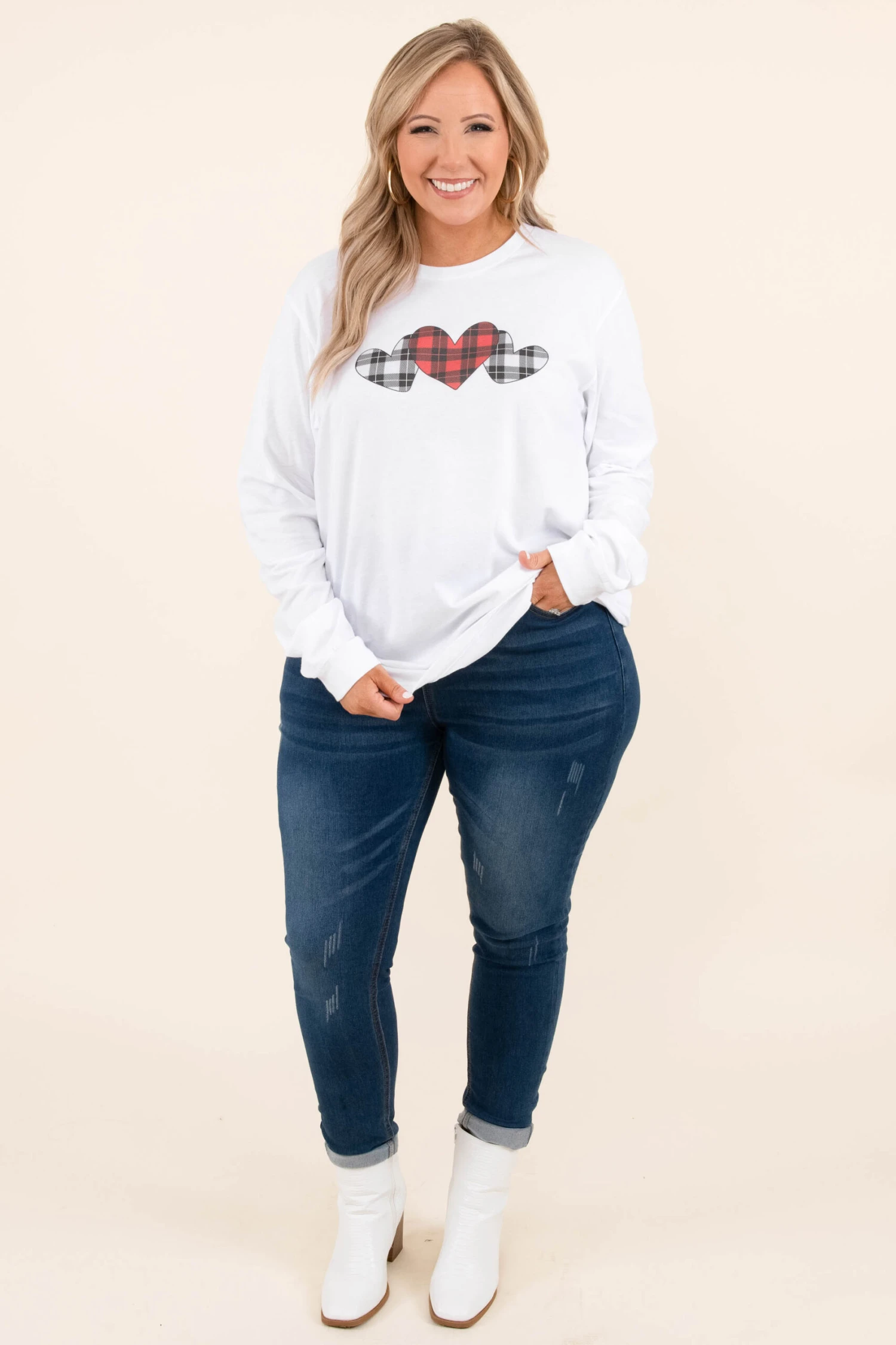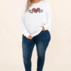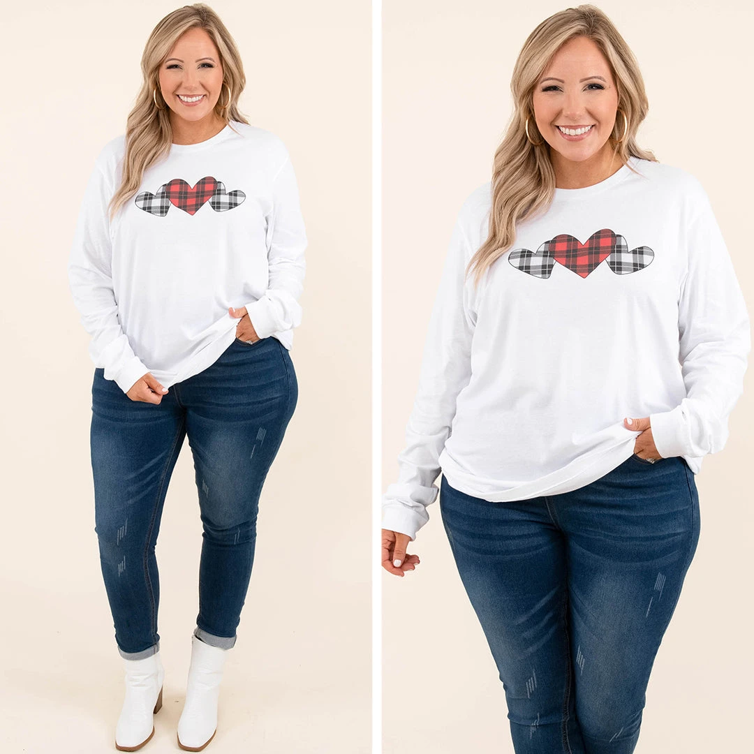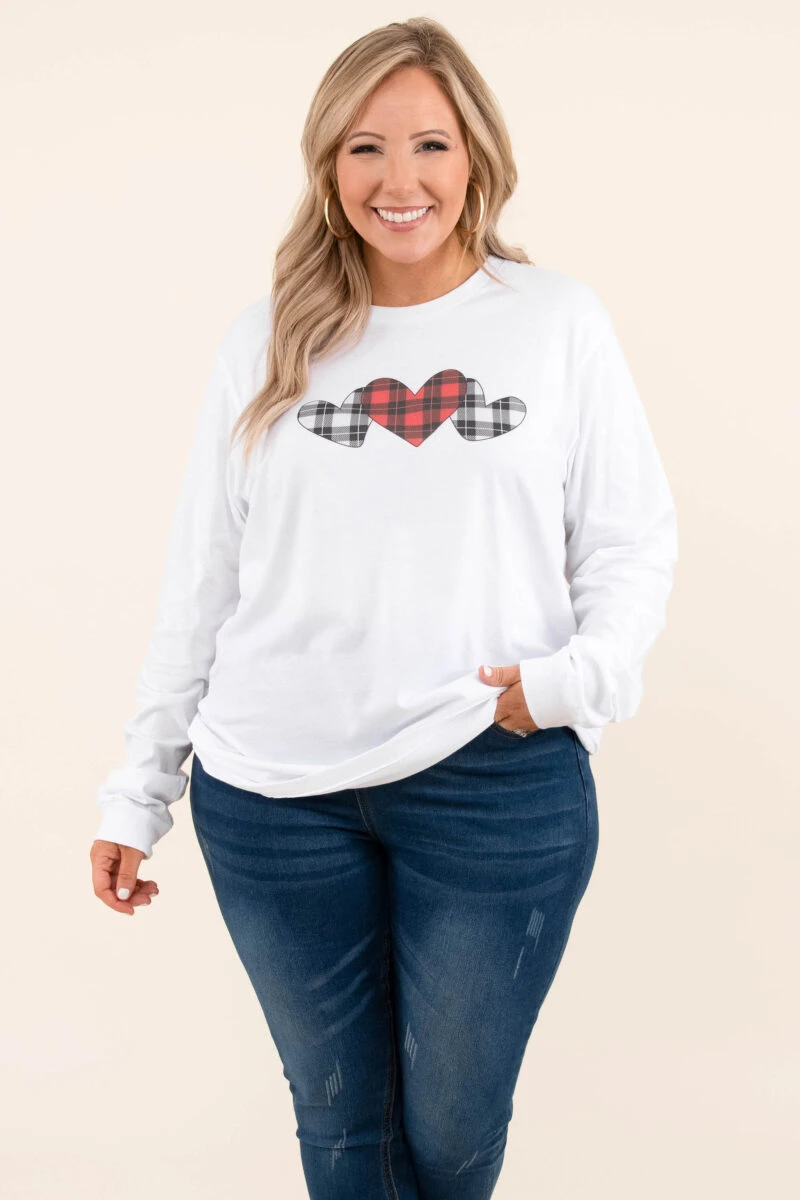We are so in LOVE with this graphic tee! It has the sweetest plaid hearts that are perfect for the season! Style with jeans and white booties for a trendy outfit this Valentine’s Day!