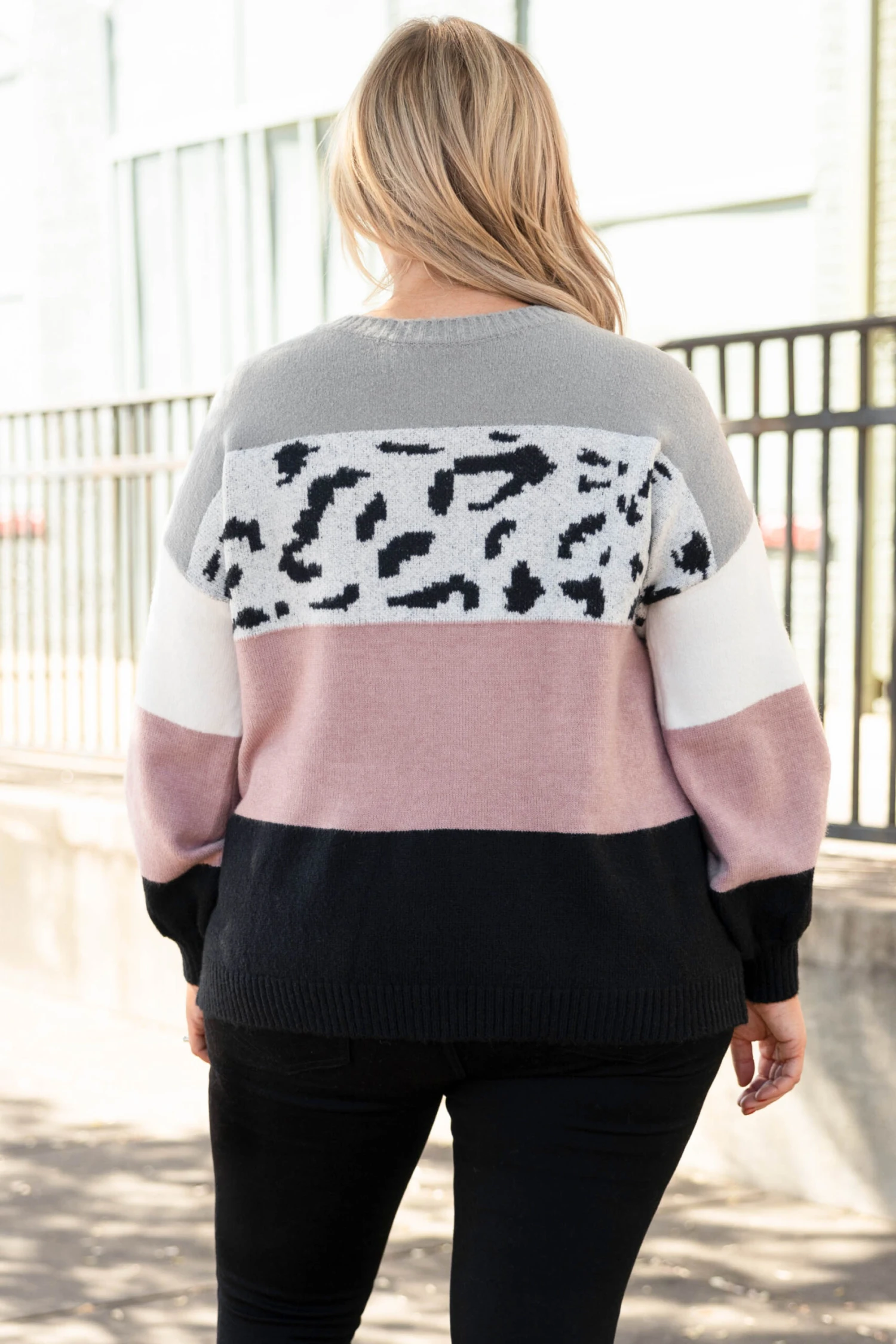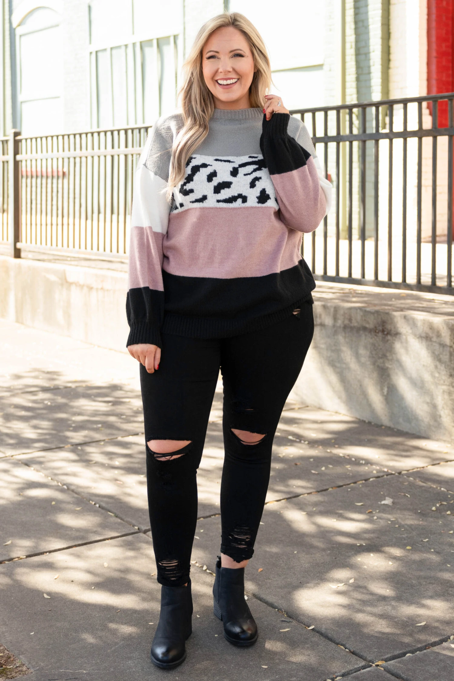This sweater will feel like heaven to you! It has a soft fabric you’ll want to wear all day long with a fun pop of leopard you can pair with your favorite pieces for every occasion! Style this top with dark distressed skinnies and booties for an easy, everyday outfit!