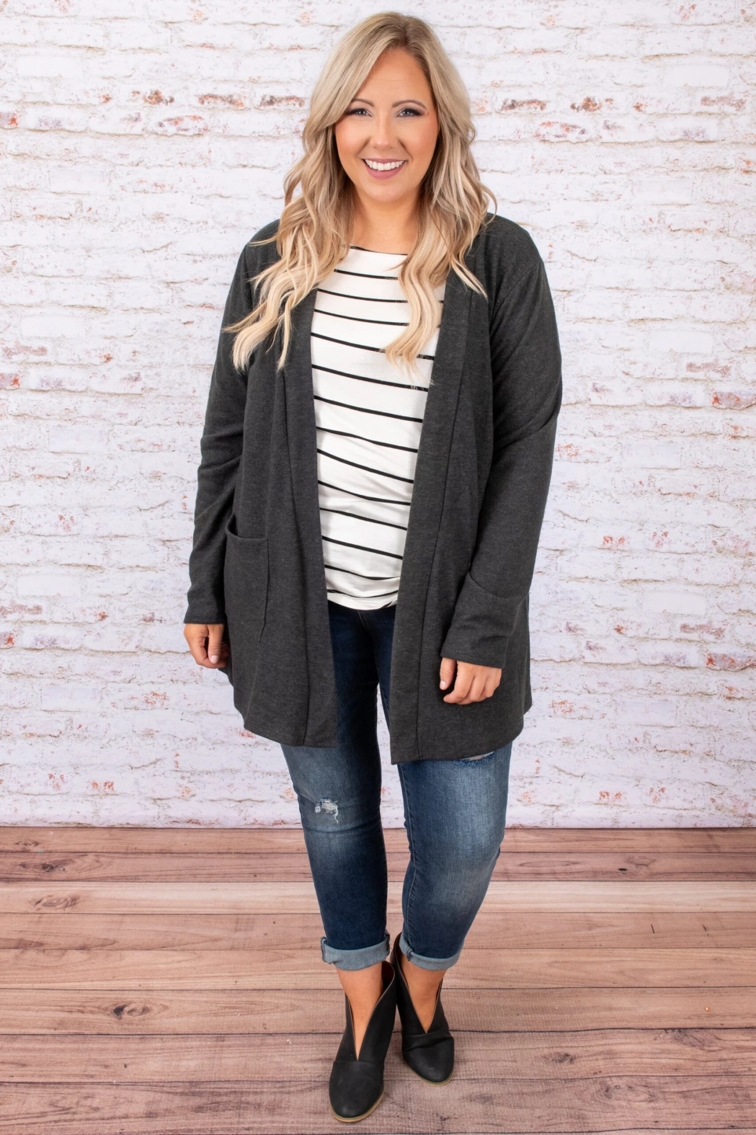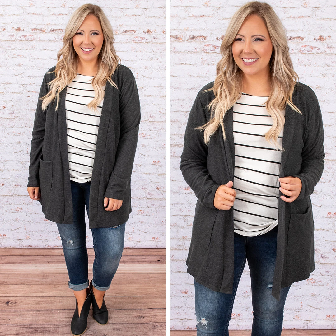 This cardigan will last you a lifetime! It is the perfect staple for your wardrobe! It features the softest material, the perfect length to pair with leggings and comfortable for all day wear! This cardigan has pockets, which we love and is so easy to style! We see this cardigan paired with a basic top and jeans! Add a pop of accessories for an effortless, chic look!Â