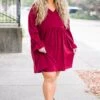 We are in love with this gorgeous dress! It has a lovely plum color with a babydoll design that is a season favorite! The flowy figure flattering fit is perfect for any occasion! Pair this beauty with some booties or heels for your next event for a sassy chic look!