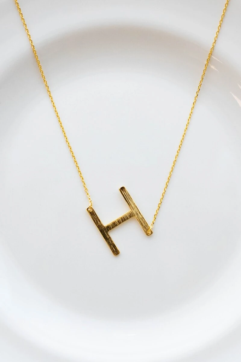 Nice to meet you! Add a personal touch to your outfits with our initial pendant. Simple and classic, with a chic gold color this custom necklace will become a new daily staple.Â