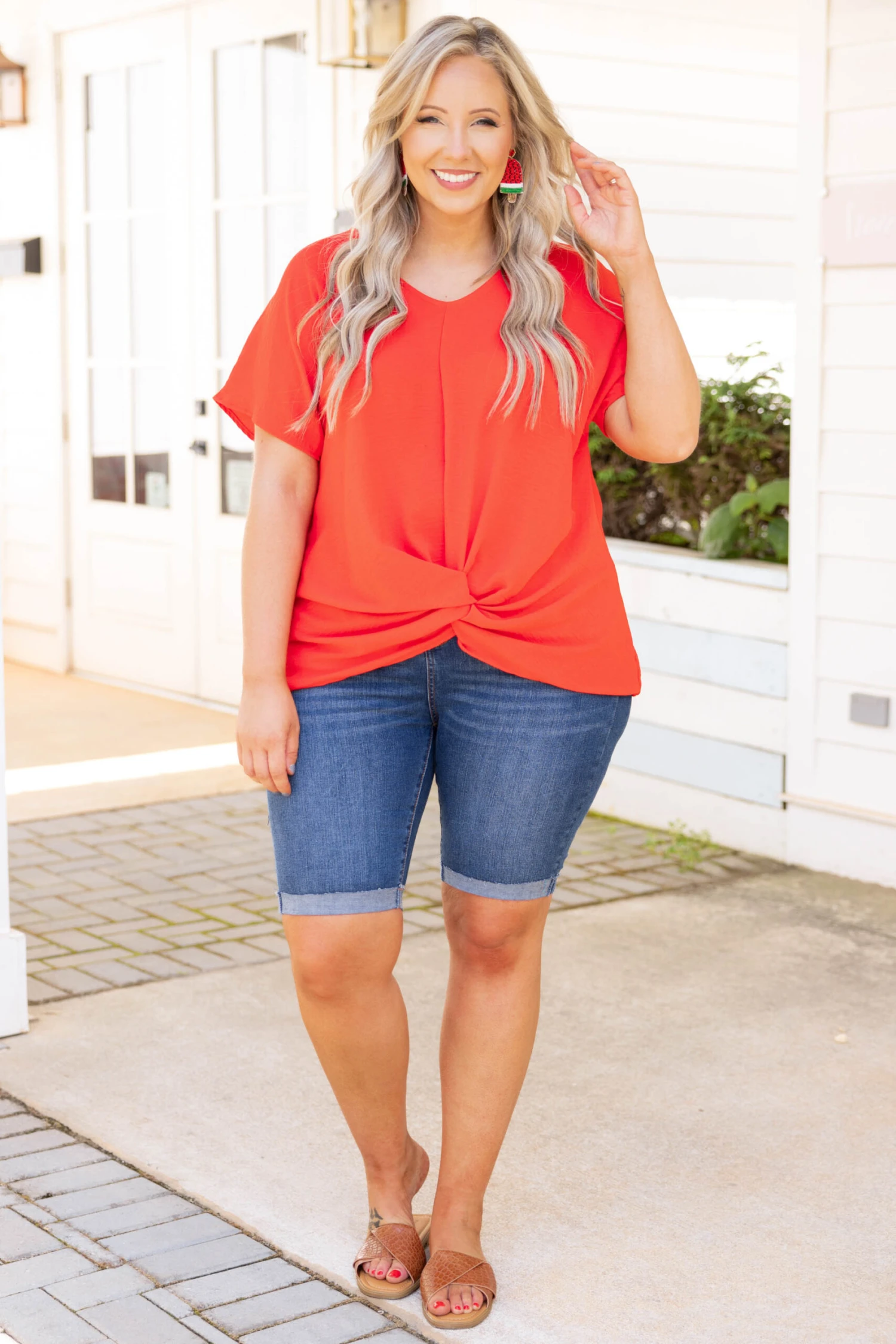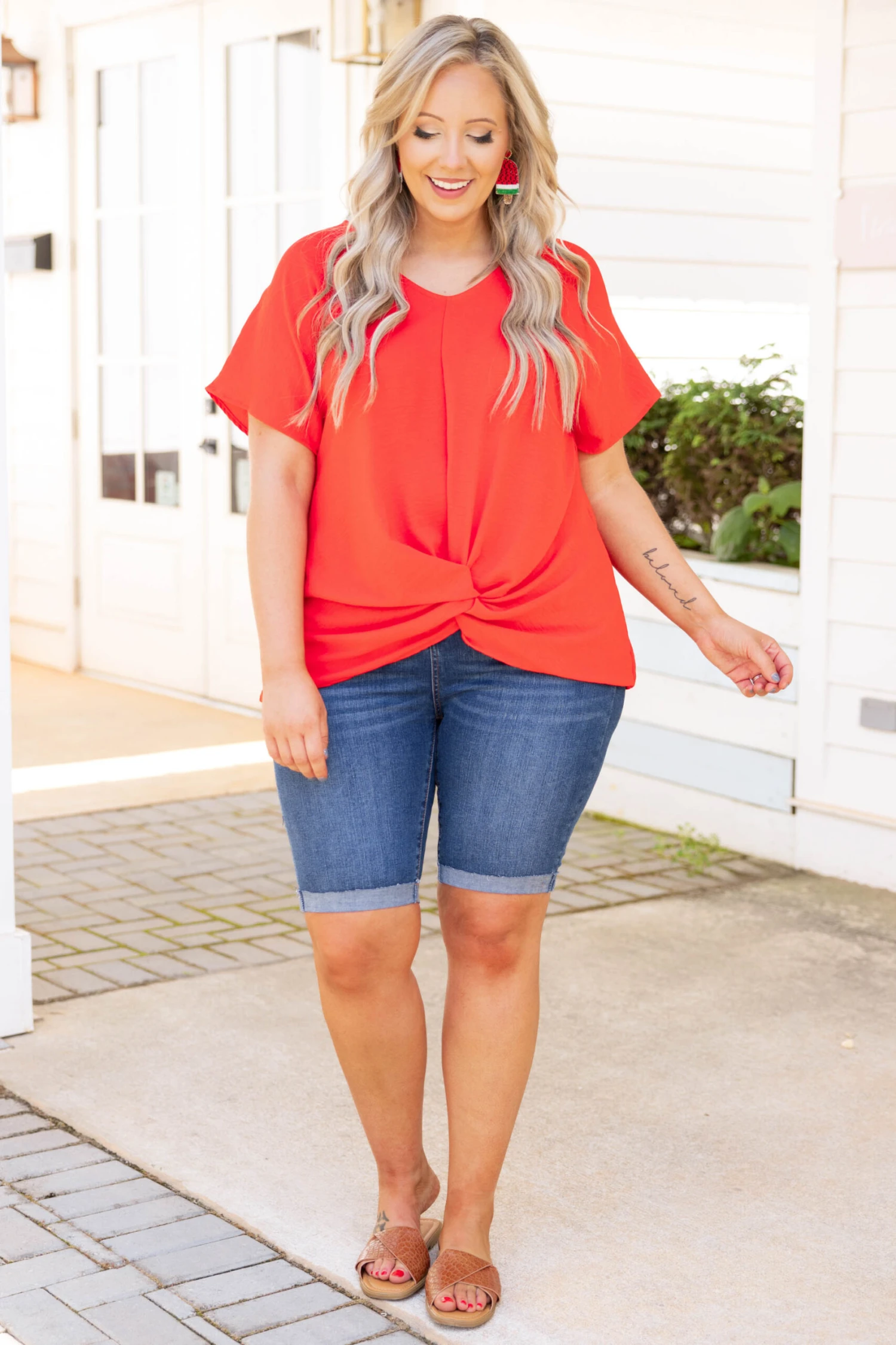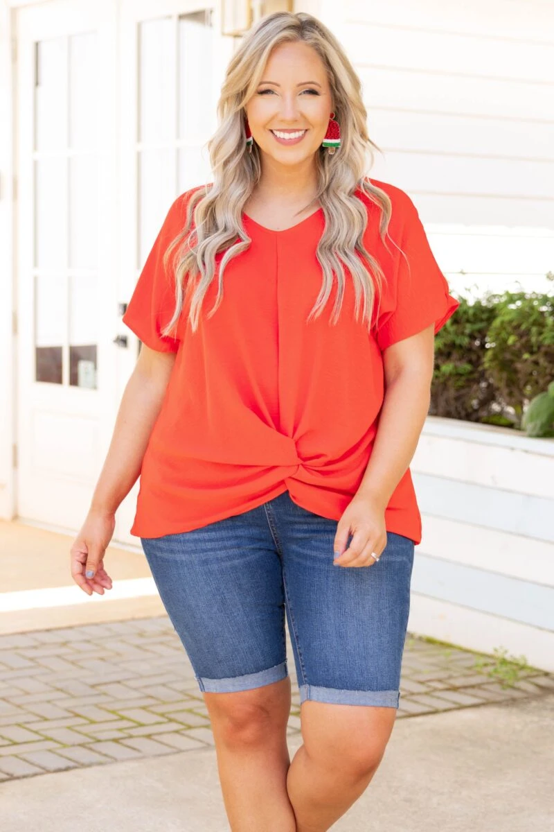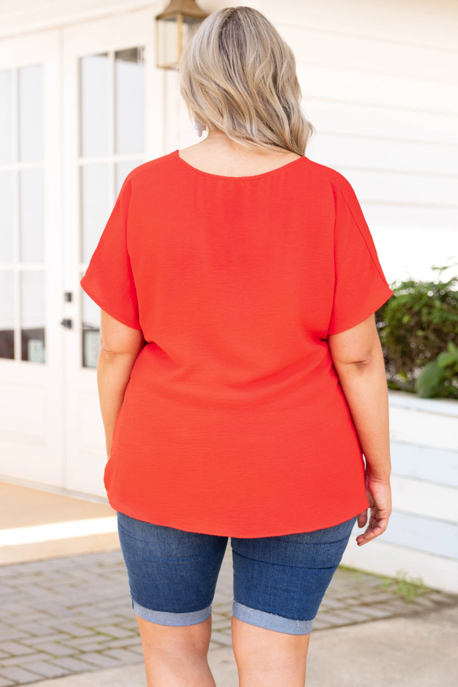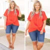 We could not heart this blouse more! This blouse has a solid tomato color you can dress up or down and style for every occasion! It’s comfortable for all-day wear, has a figure-flattering fit, and can be paired with your favorite shoes and accessories! Simply wear this blouse with shorts and sandals for an effortlessly chic look!Â