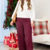 The Highly Favored Pants in wine are the perfect blend of comfort and style! These long, wide leg pants feature a stretchy waistband, making them both fashionable and practical! Indulge in some wine-colored pants without sacrificing comfort!