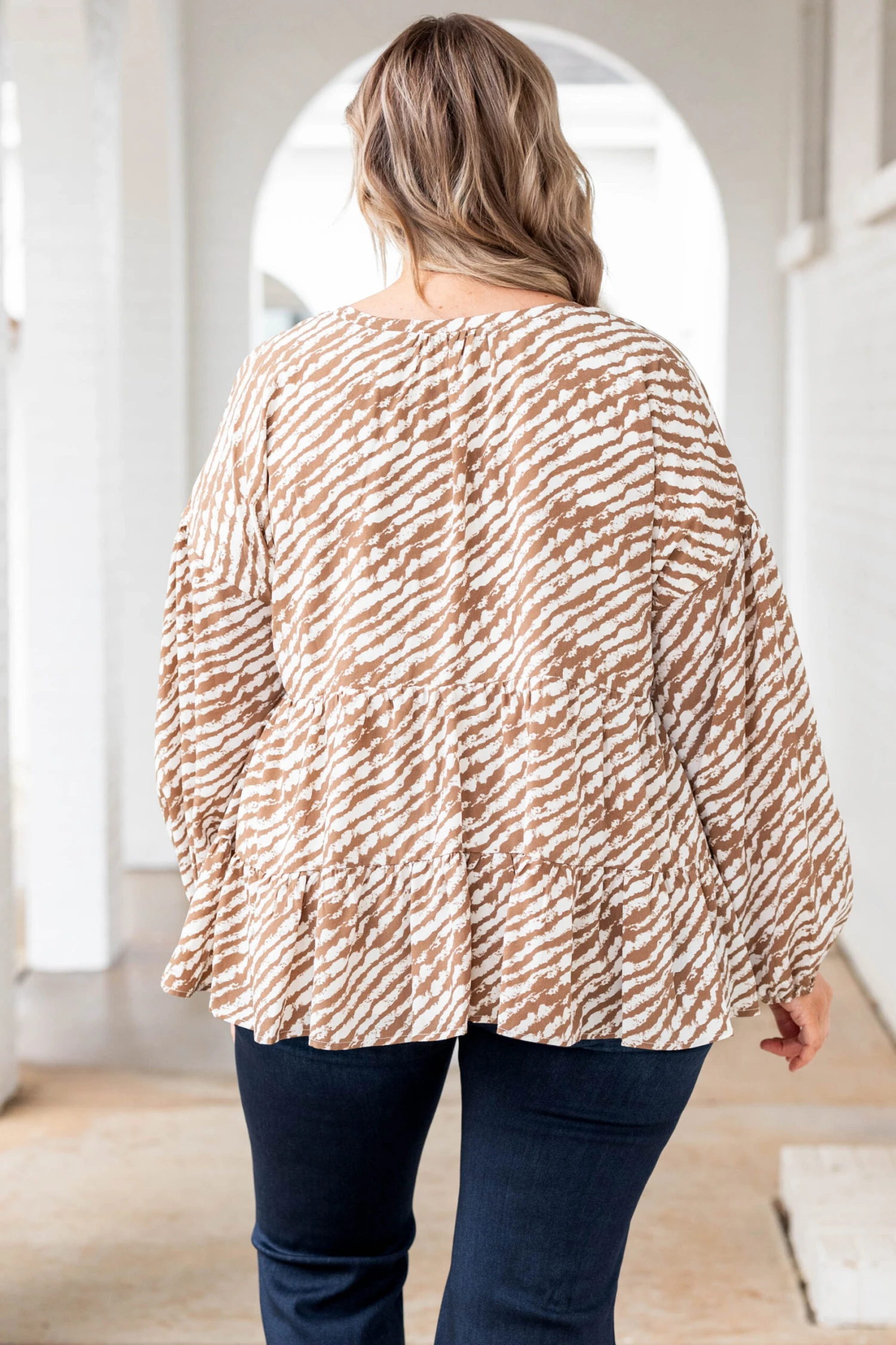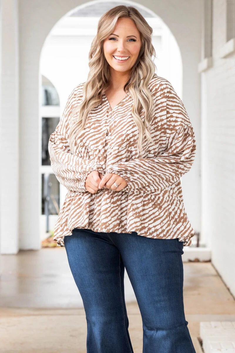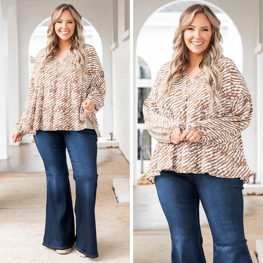 It’ll be easy to hold on to the love that you have for this top all season long! This top has a neutral color with a patterned design that is super chic! The flowy fit is super sweet! Style this top with some flare jeans and and boots for an unforgettable look!