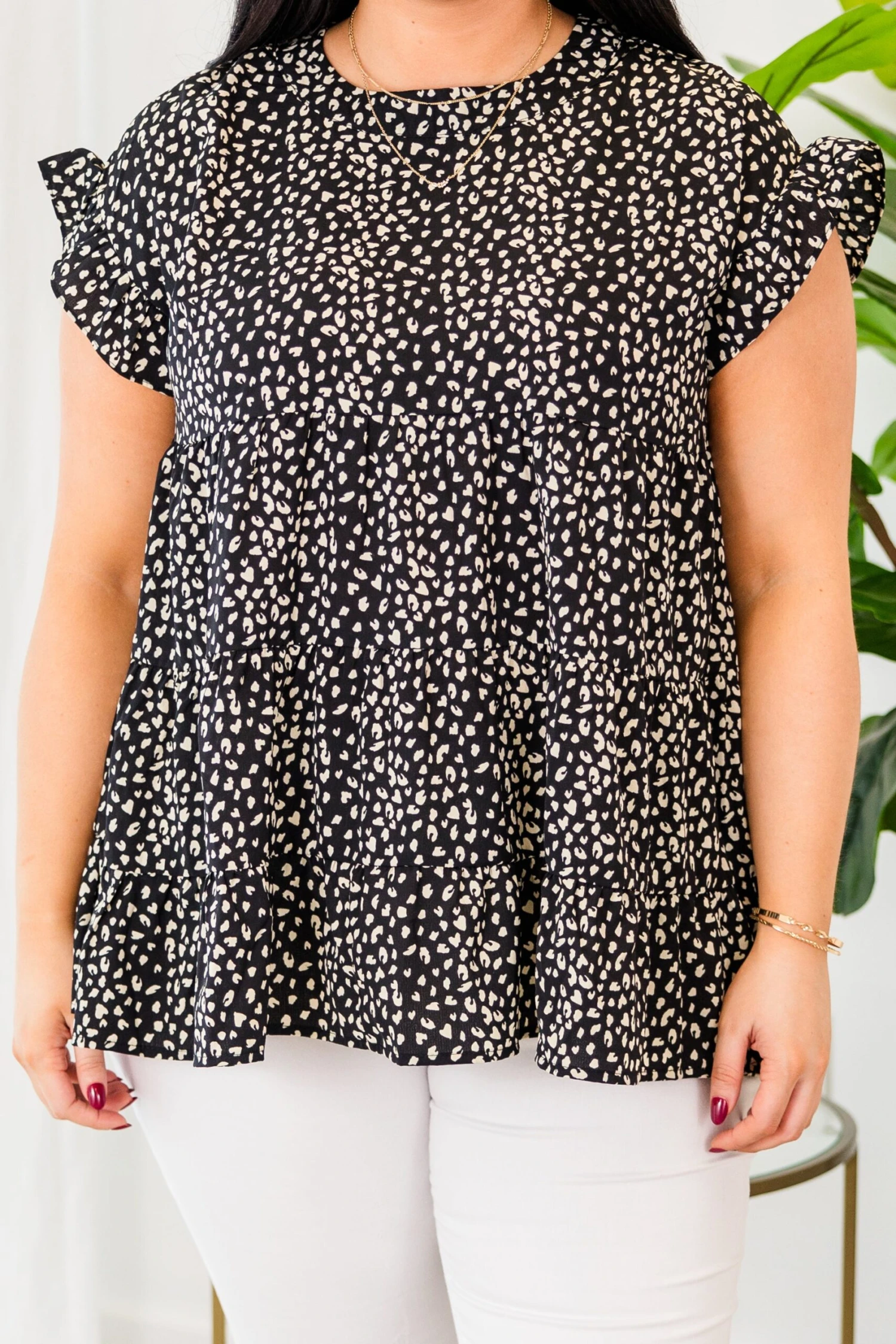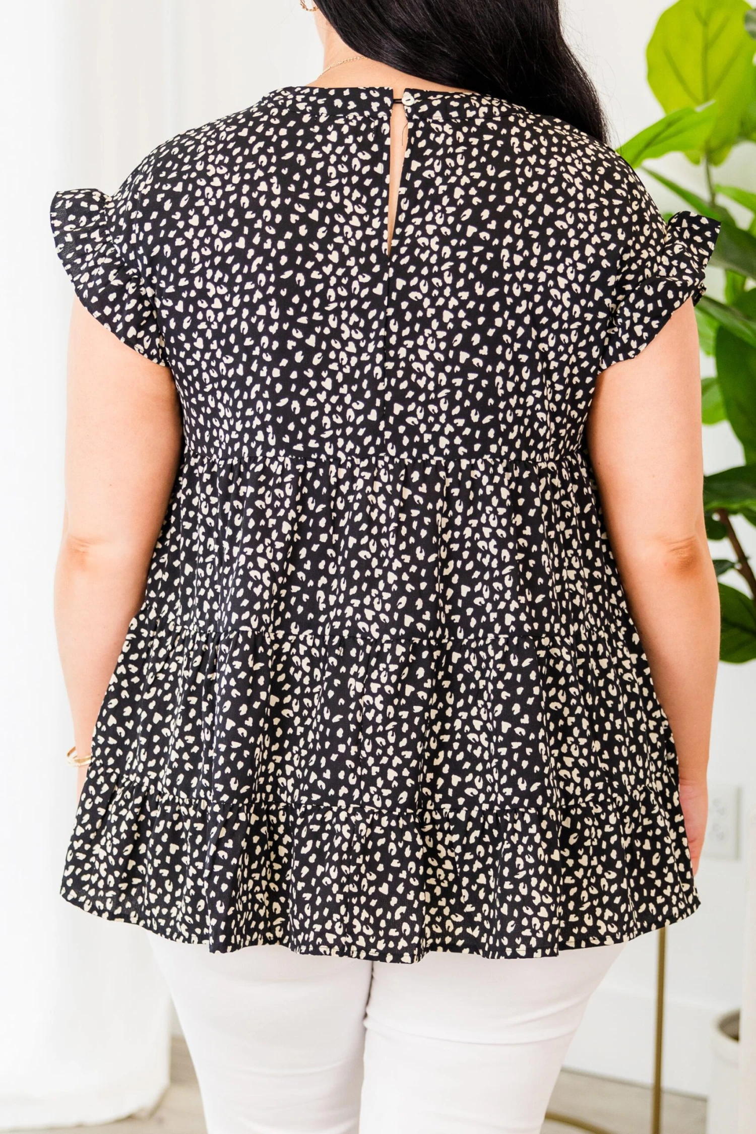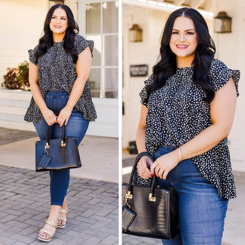 You’ll love this gorgeous top! Featuring a trendy leopard pattern and fun flutter sleeves, this top is perfect for any occasion – from a day in the office to a night out on the town! Elevate your style with this neutral colored top!