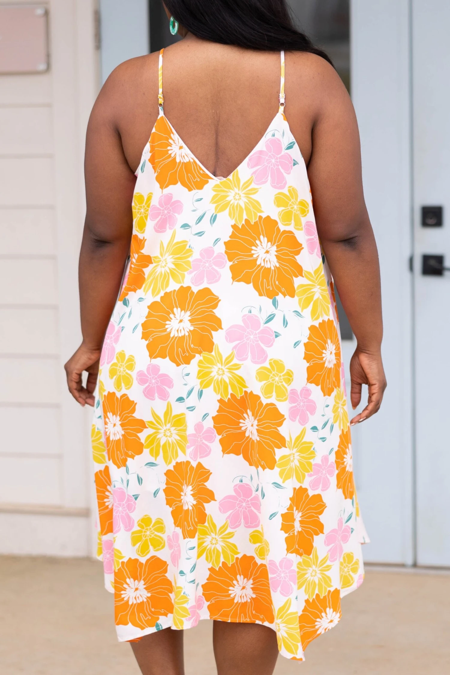 Look effortlessly beautiful in this gorgeous dress! Crafted from a lightweight, airy fabric with a unique floral pattern and thin spaghetti straps for a comfortable fit, this dress is sure to be a staple in your wardrobe!