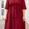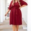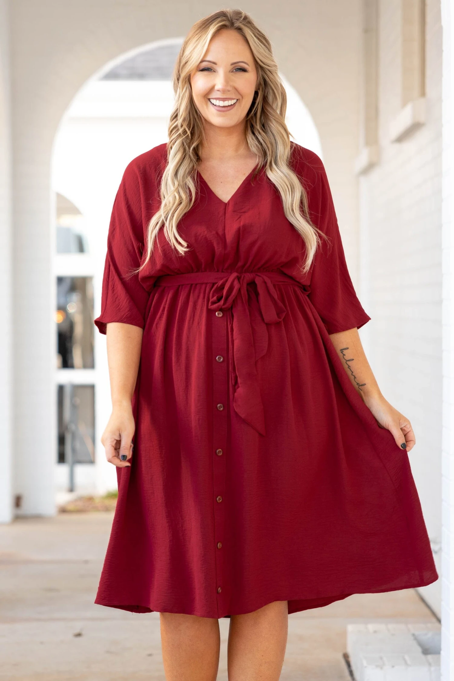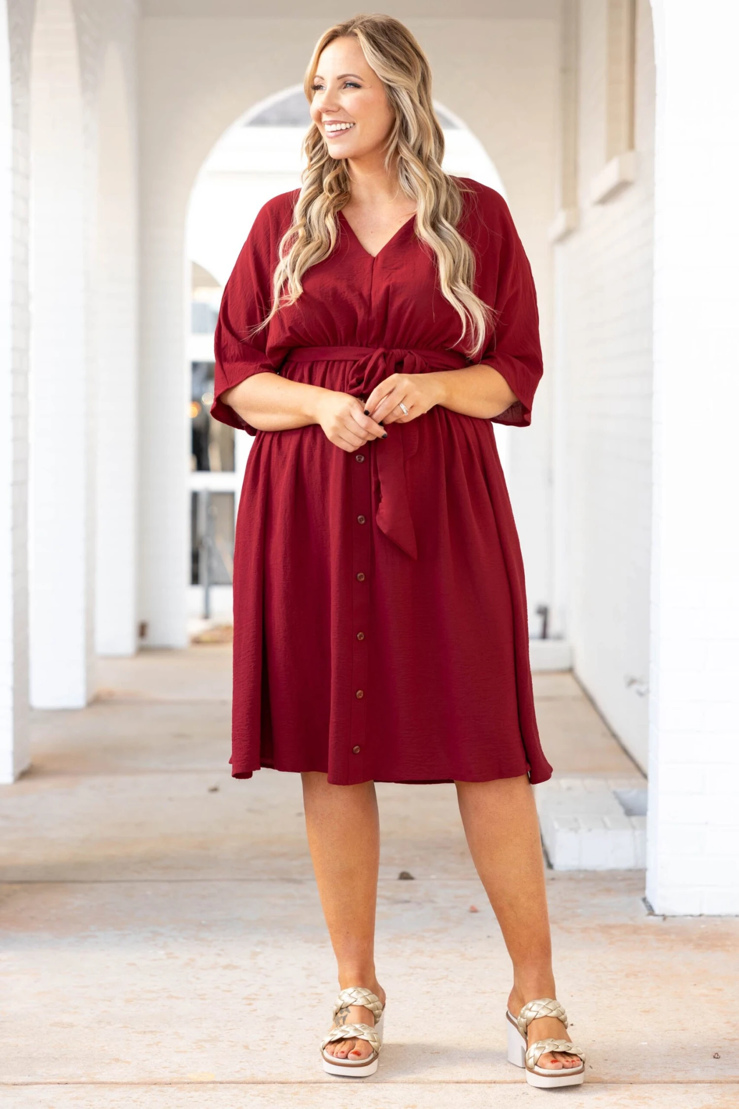 Make this amazing dress all yours! It has a lovely burgundy color with a flowy, figure flattering fit that is just in time for the season! The waist tie is super cute and trendy! Throw on this beauty with heels and cute accessories for your next adventure!