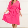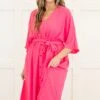 Make this amazing dress all yours! It has a lovely hot pink color with a flowy, figure flattering fit that is just in time for the season! The waist tie is super cute and trendy! Throw on this beauty with heels and cute accessories for your next adventure!