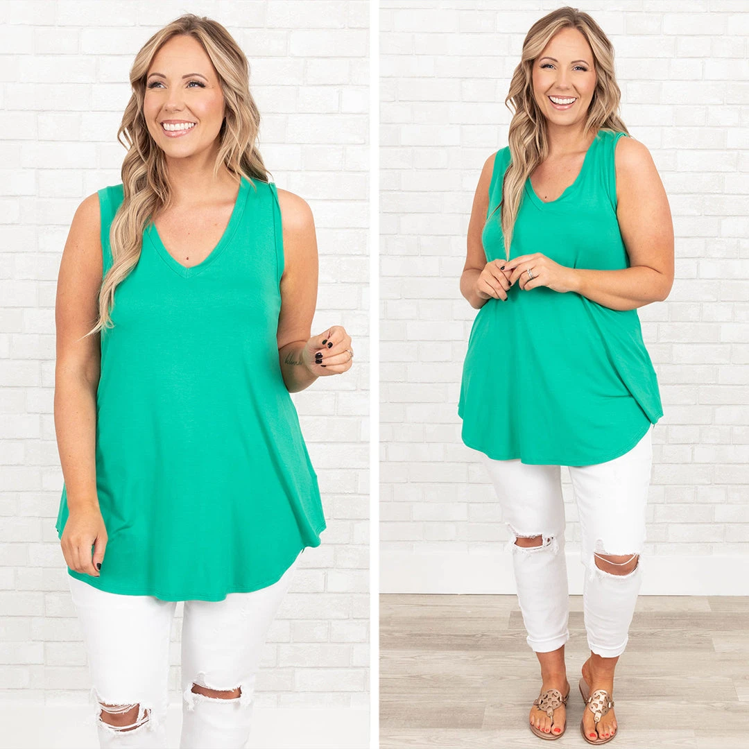 This tank is perfect for a hot day outside! The green color pairs perfectly with all your favorite jeans! This cutie is so soft that you can comfortably wear it all day! Pair this tank with your fave skinnies and cute booties for a lovely, chic look!