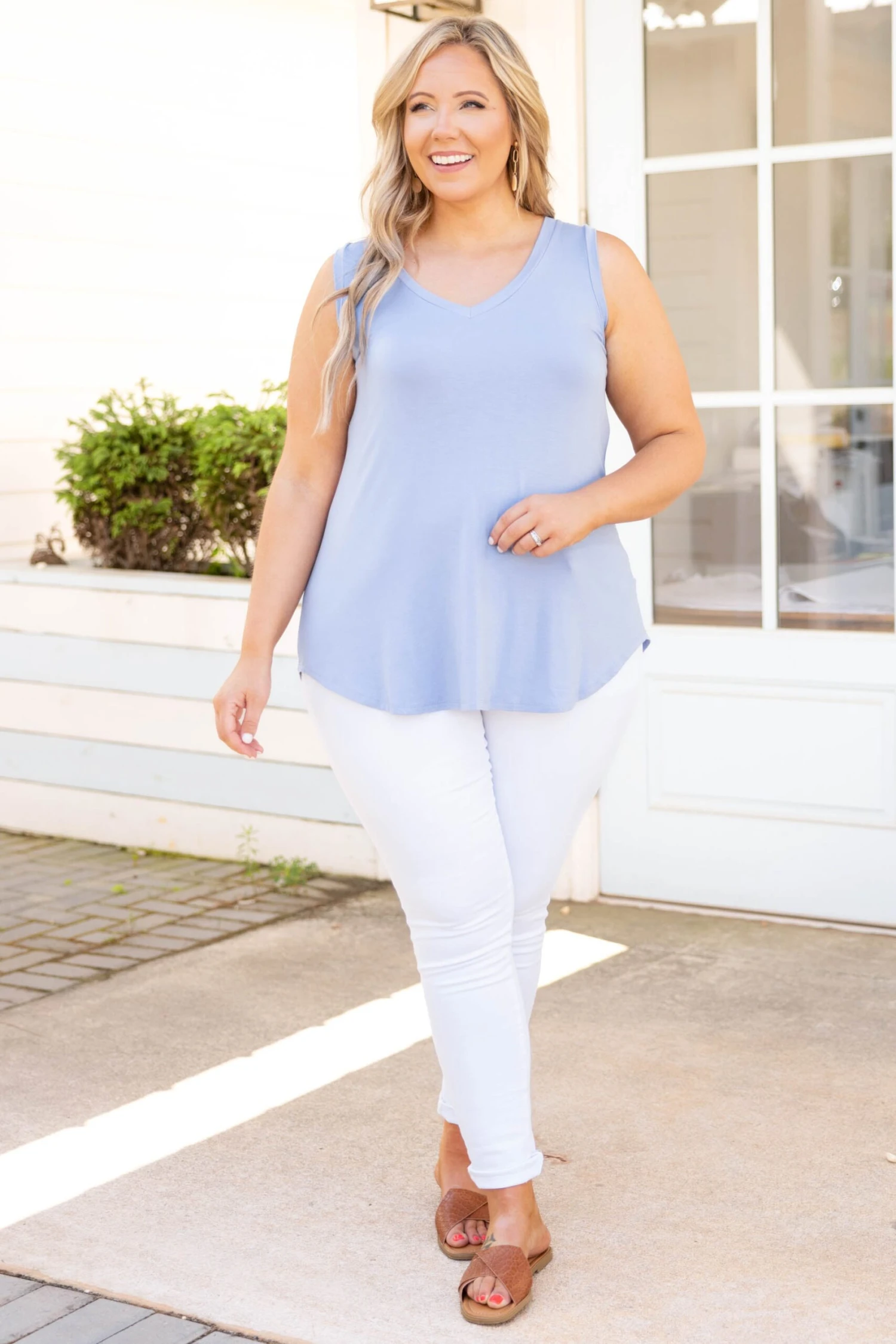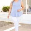 This tank is perfect for a hot day outside! The oxford blue color pairs perfectly with everything in your closet! This cutie is so soft so you can comfortably wear it all day. Pair this tank with your fave skinnies and cute sandals for a lovely chic look!