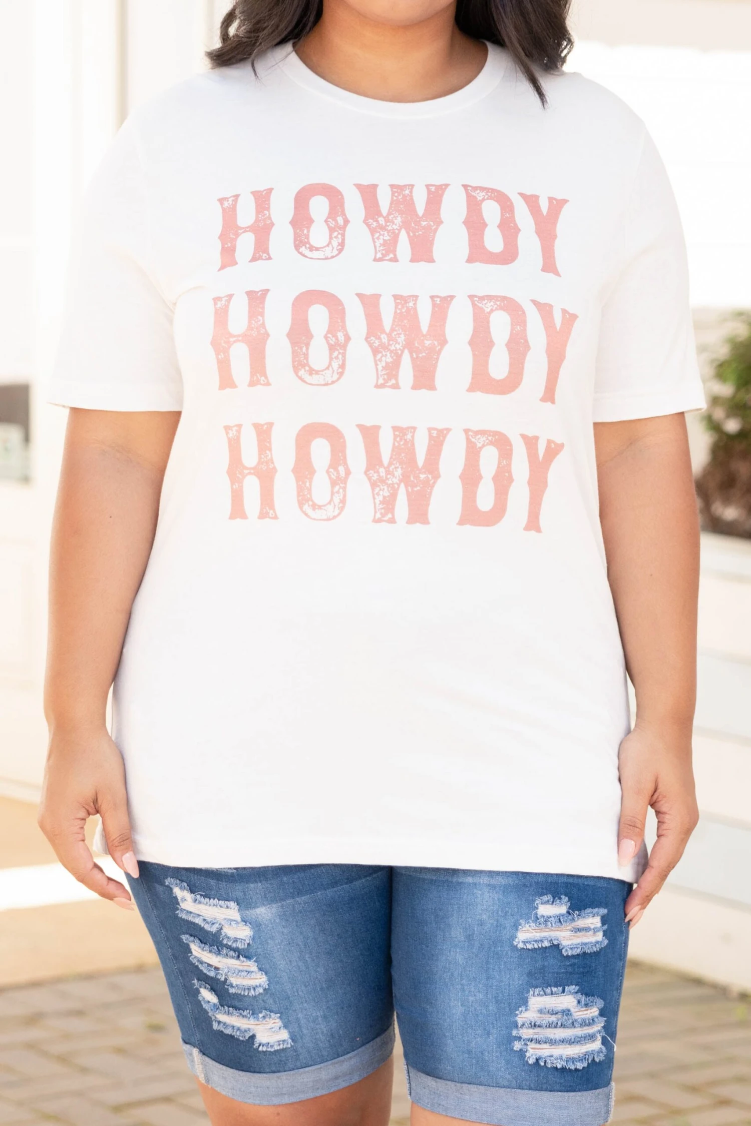 Howdy girls! This tee will have you looking like a total cowgirl queen! The pink howdy graphic is so cute and is perfect for a bachelorette trip or a night out with your girls! Style it with some jean shorts and sandals for a super cute look!Â
