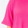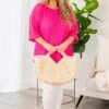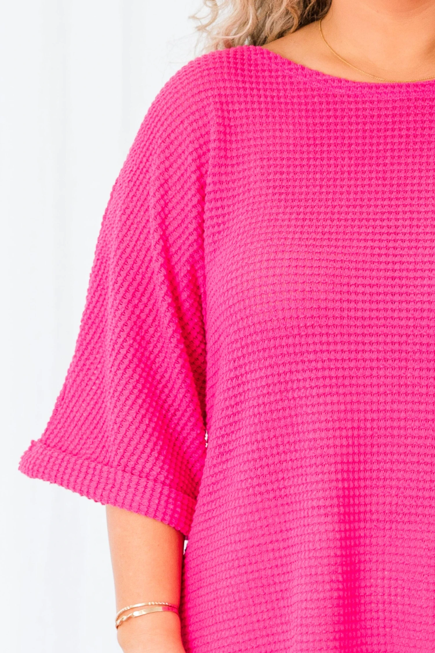 Hurry along to the checkout with this lovely top! It is must-have addition to your wardrobe! The light weight, diamond lattice design is so classic, while the pretty hot pink color adds a pop of fun! Pair this cutie with a tank and white denim for a sassy chic look!