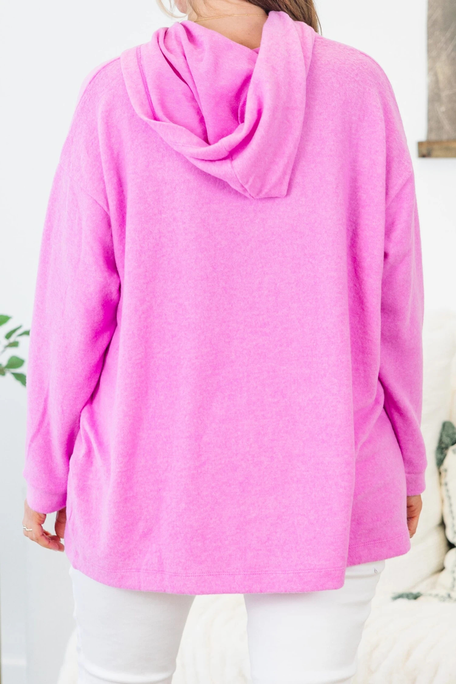 Expertly crafted with brushed melange hacci material, this top in bright mauve is the ultimate in comfort and style! With a hooded design, this top is perfect for staying warm on the go! Upgrade your wardrobe with this must-have piece!