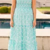 We can’t wait for you to experience how you’ll light up the room in this dress! It features a smocked bodice and adorable shoulder ties for the perfect fit! With its maxi length, it’s great for a day at the beach or casual day out on the town! Its pretty aqua color adds a pop of color to any outfit!