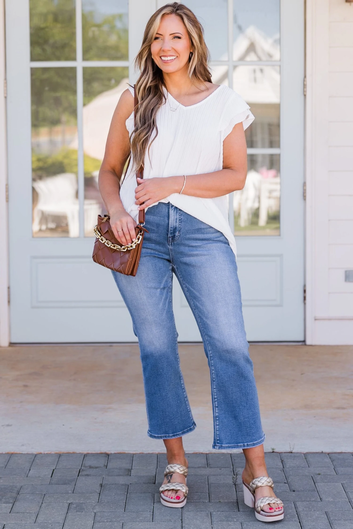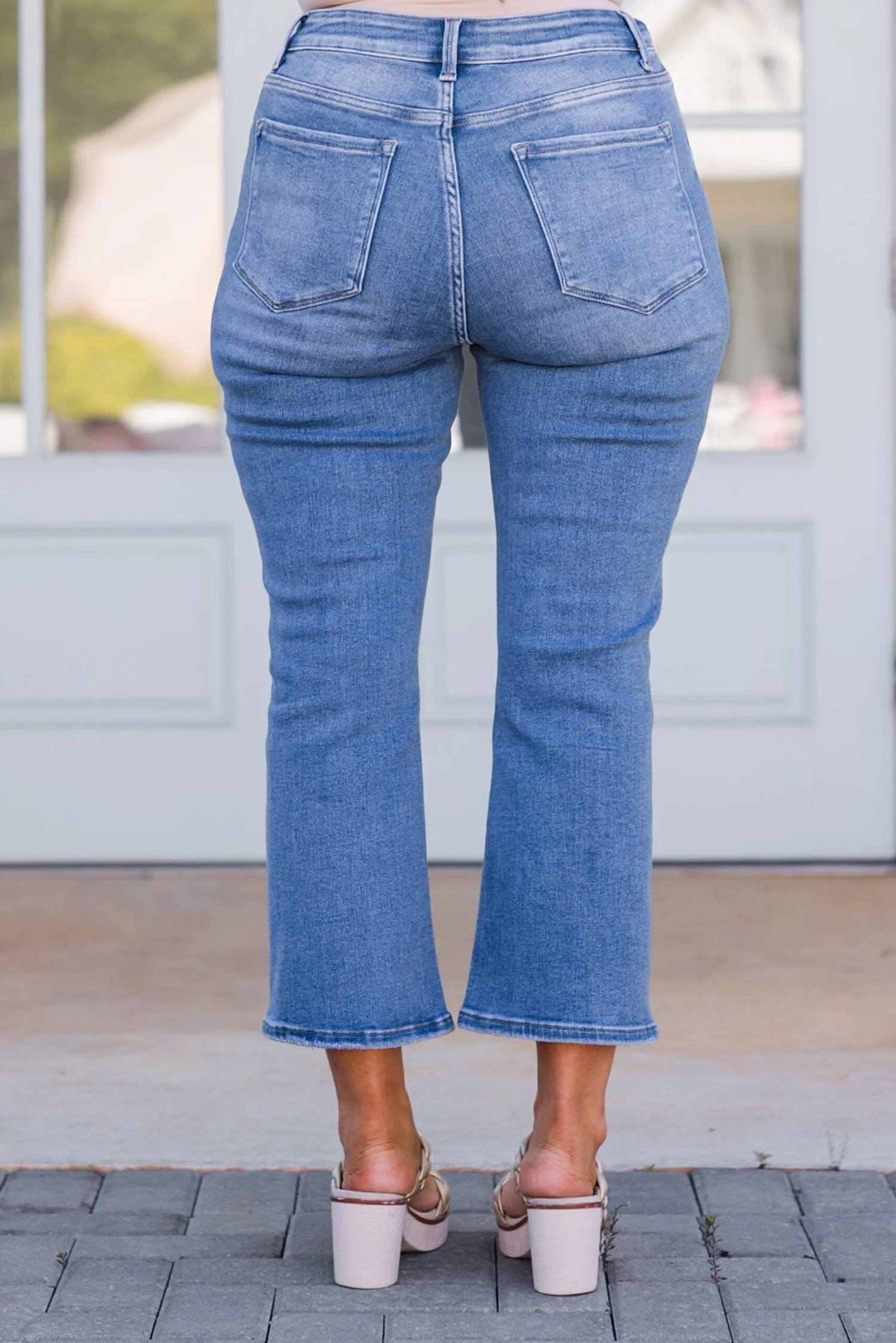 I Dream Of Denim Jeans in a striking medium wash are a must-have addition to your wardrobe! These cropped flare jeans give a trendy, modern touch to any outfit! Stay on trend with this versatile and stylish piece!