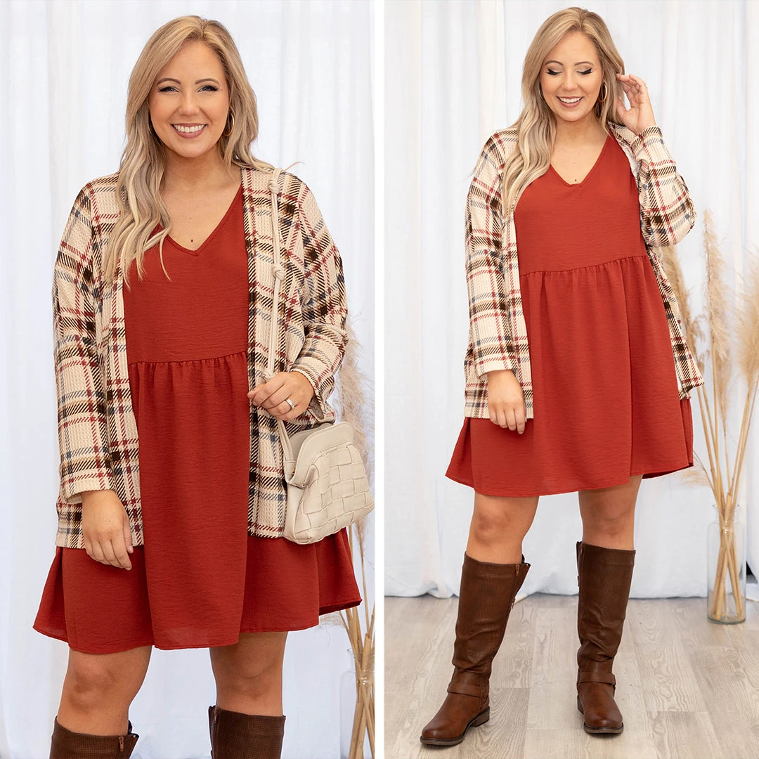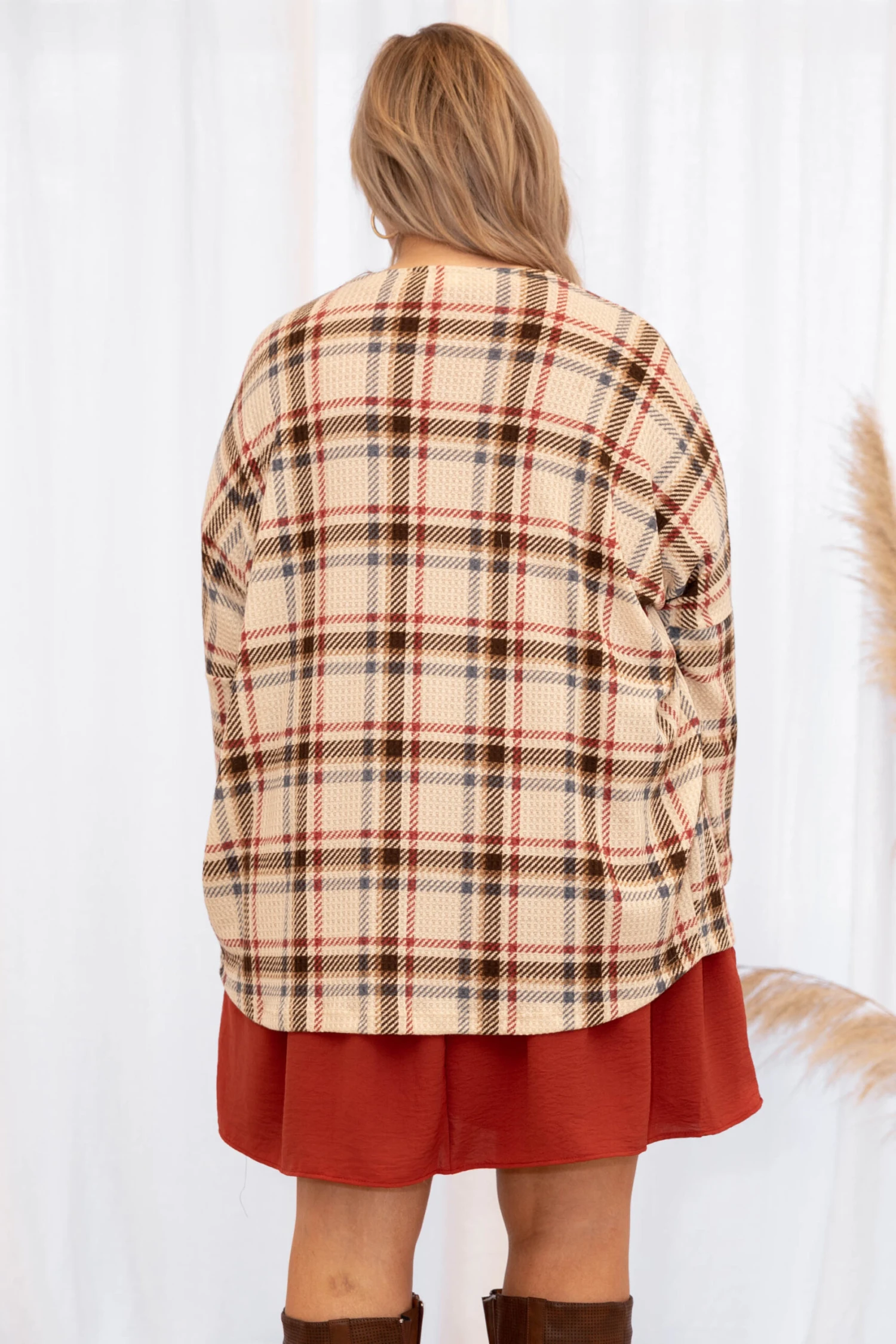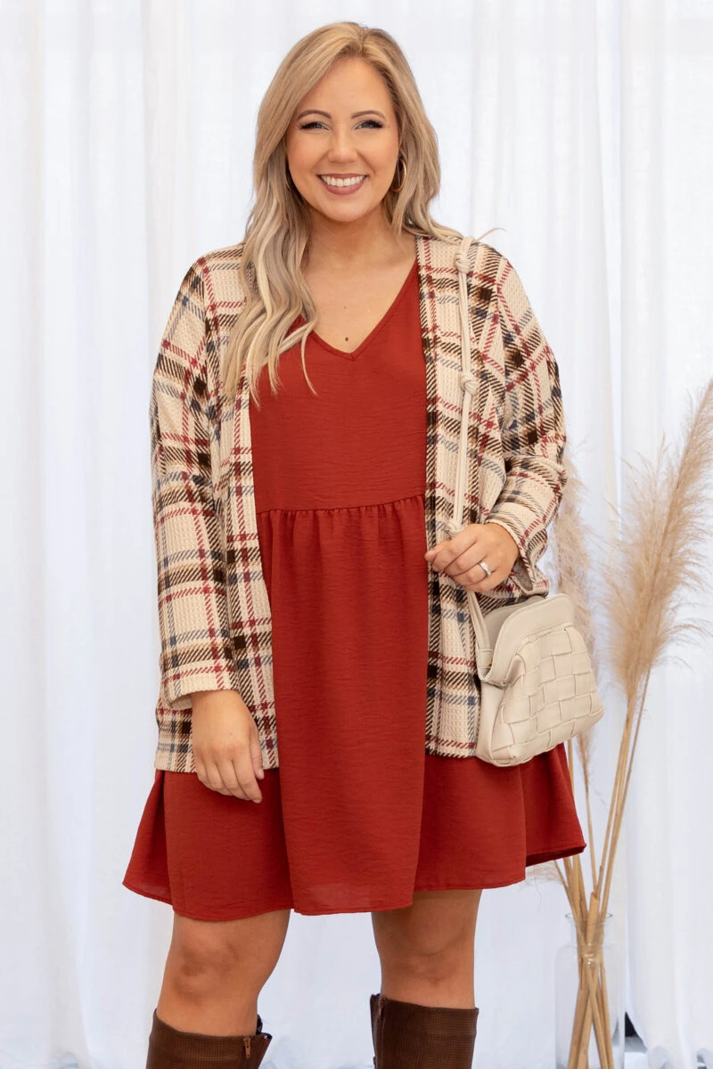 This chic cardigan has a fun plaid pattern with neutral colors you can style with everything in your wardrobe! This ultra soft cardigan is the perfect layering piece for the new season. Style this cutie with a solid top or dress for an effortlessly chic look!Â