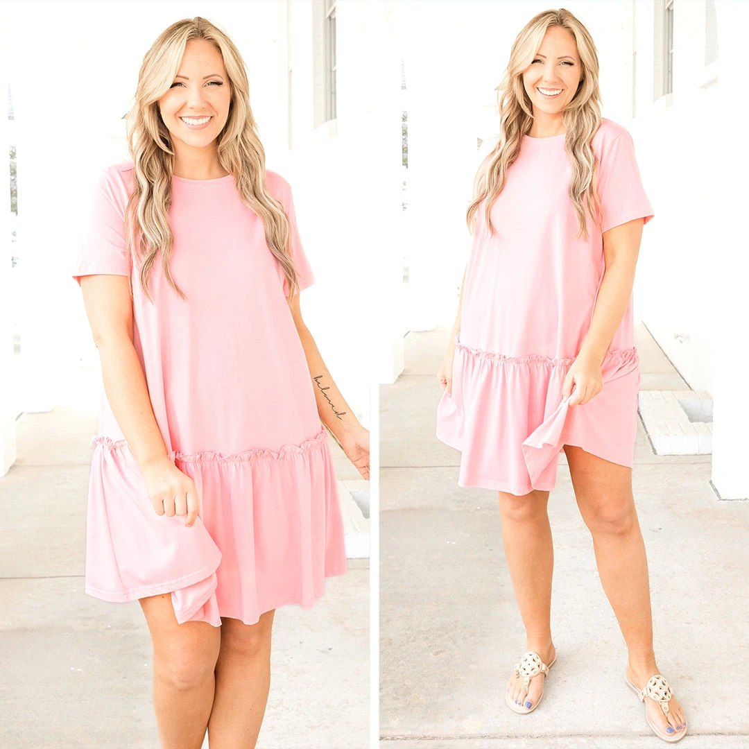 This dress is perfect for a casual day out! Its sassy length and cute silhouette make it suitable for any occasion, while the pink hue adds a modern touch! Be bold and step out in style with this eye-catching dress!