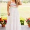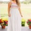 This dress is so cute we can’t get over it! The rainbow striped bodice is so cute and the maxi length is so trendy right now! This babe can take you from a beach day look to a date night outfit so easily! We love it with some heels and a super fun accessory for a super stylish look!