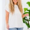 Experience effortless style and comfort with this top in off-white! Made from soft ribbed knit fabric, it features flutter sleeves and a rounded neckline with ruffle detail! Pair it with your favorite jeans or denim shorts for a perfect, casual look!